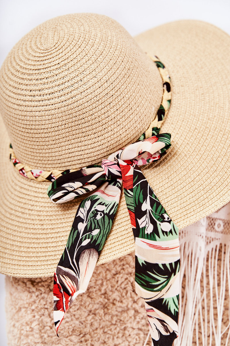 Жіноча шапка з красивим поясом, який має різнокольоровий бант з квітковим мотивом. Виріб виготовлено з 100% паперу. Має шнурок, який дозволяє регулювати і підганяти по окружності голови. Полі капелюхи досить широкі. Ви можете використовувати шапку під час відпустки в спекотні дні. Обов’язково перегляньте всю нашу колекцію головних уборів!