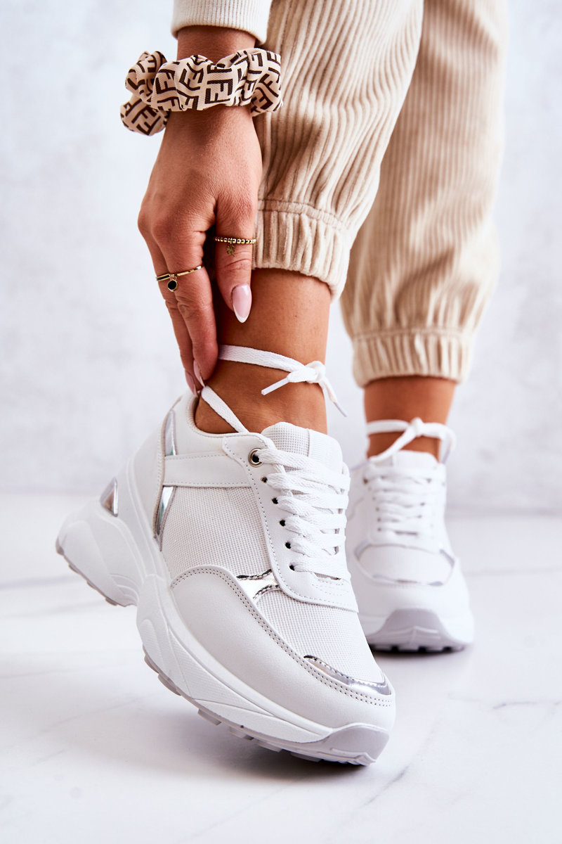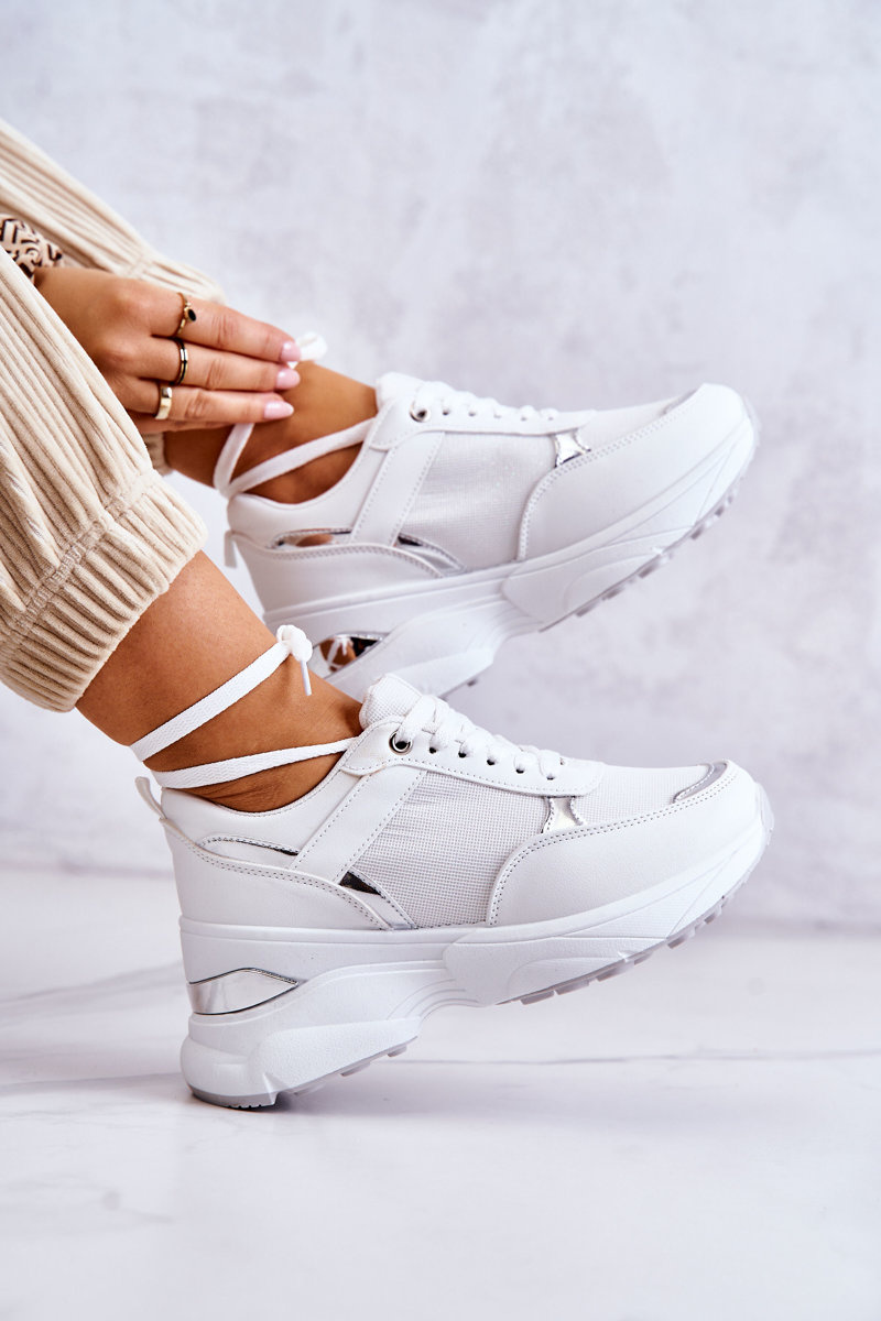 Жіноче блискуче спортивне взуття на танкетці білого кольору Activity