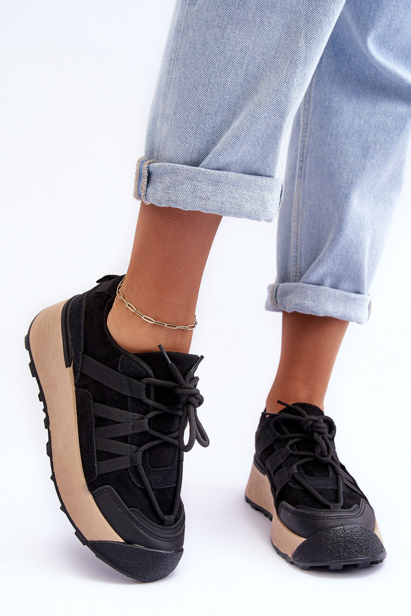 Жіноче замшеве спортивне взуття на платформі чорного кольору Rohan