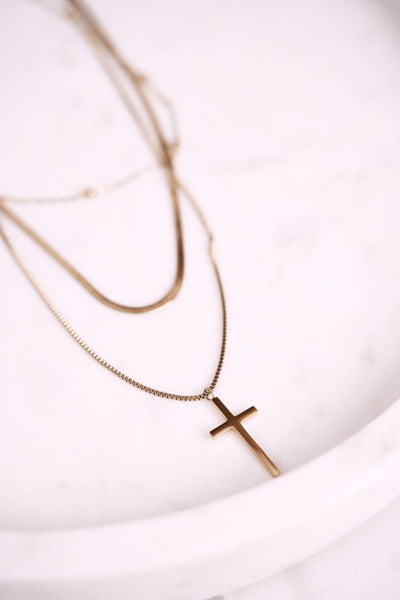 Жіноче потрійне намисто з золотим потрійним хрестом