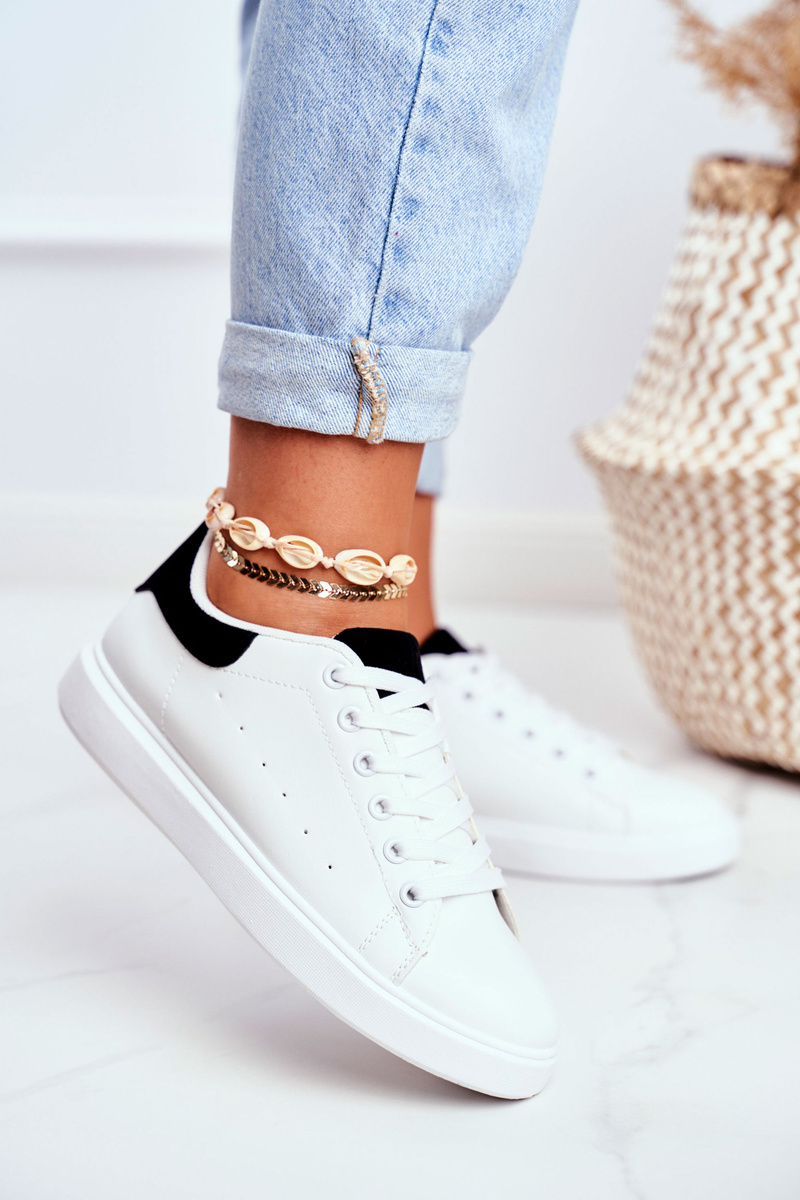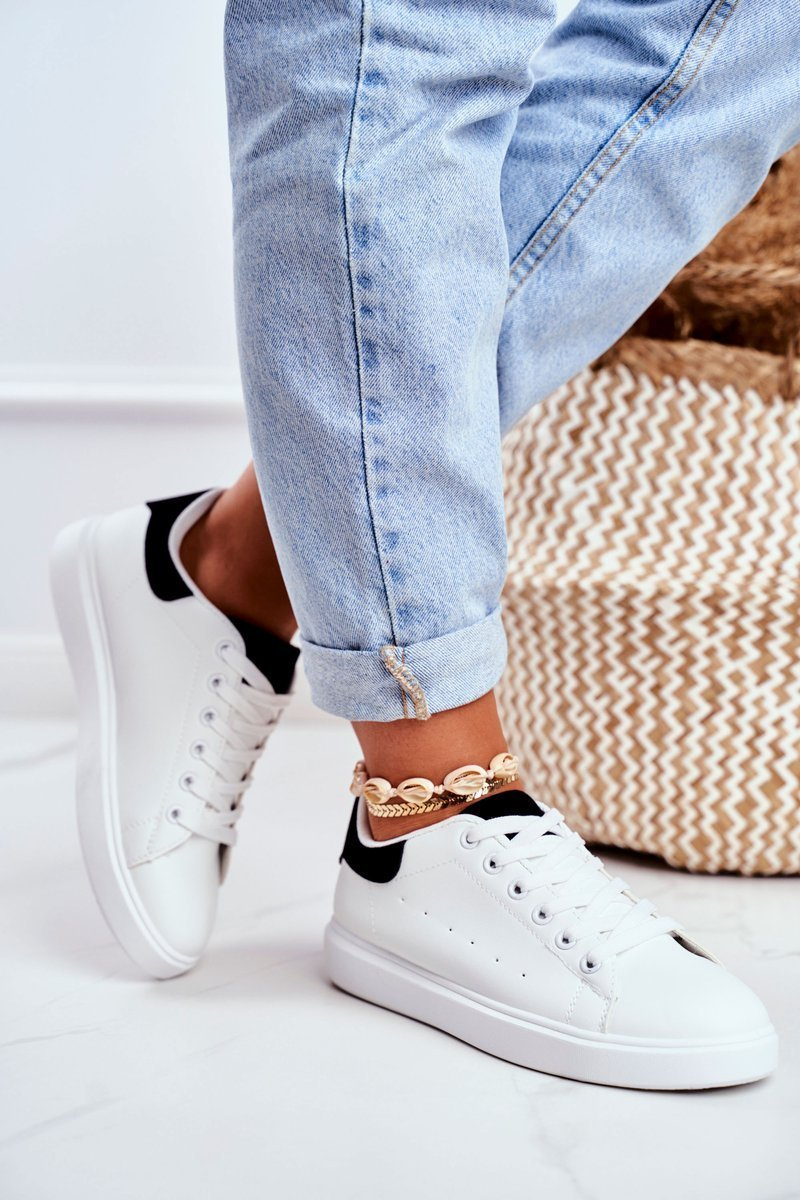 Жіноче спортивне взуття білі на чорному каблуці Milly