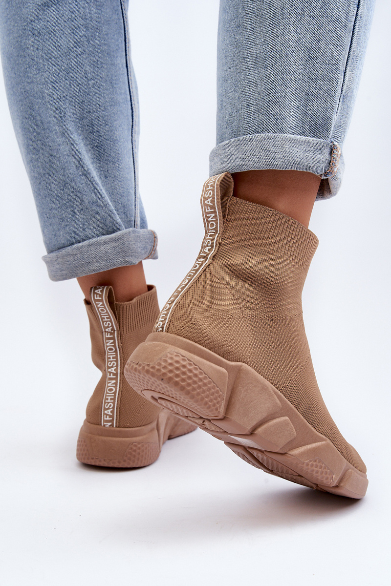 Жіноче спортивне взуття з верхом у формі носка. Виготовлений з текстильного матеріалу. Заокруглені пальці. Текст на звороті. Модель має м'яку знімну устілку. Ви обов'язково використаєте цей модний крій для багатьох стилів! Обираючи розмір, орієнтуйтеся на таблицю розмірів.