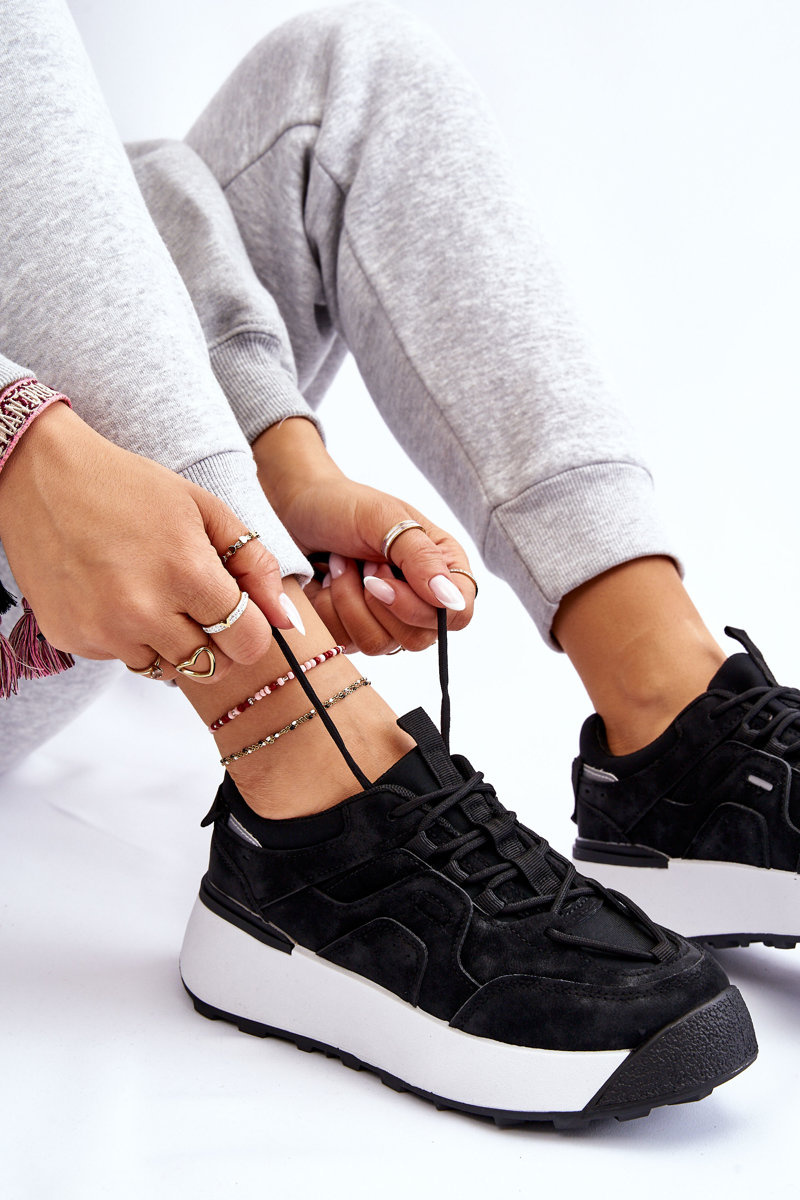 Чудове жіноче спортивне взуття встановлено на масивній платформі, яка ніжно підтягне Вашу фігуру. Модель має класичну шнурівку. Крім того, каблук посилений, а на задній частині верху є світловідбиваючий елемент. Устілка в цьому взутті виготовлена з тканини і змінна. Обираючи розмір, орієнтуйтеся на таблицю розмірів.