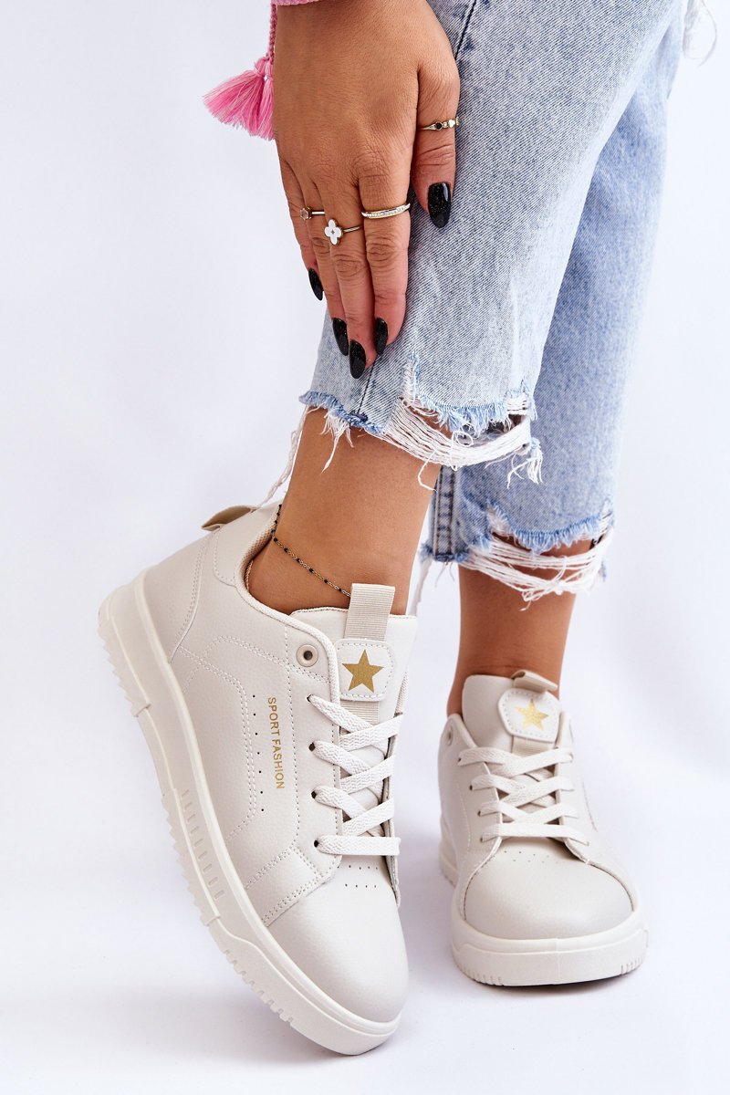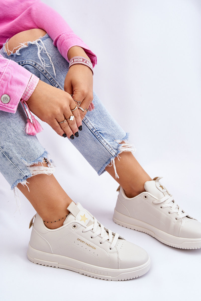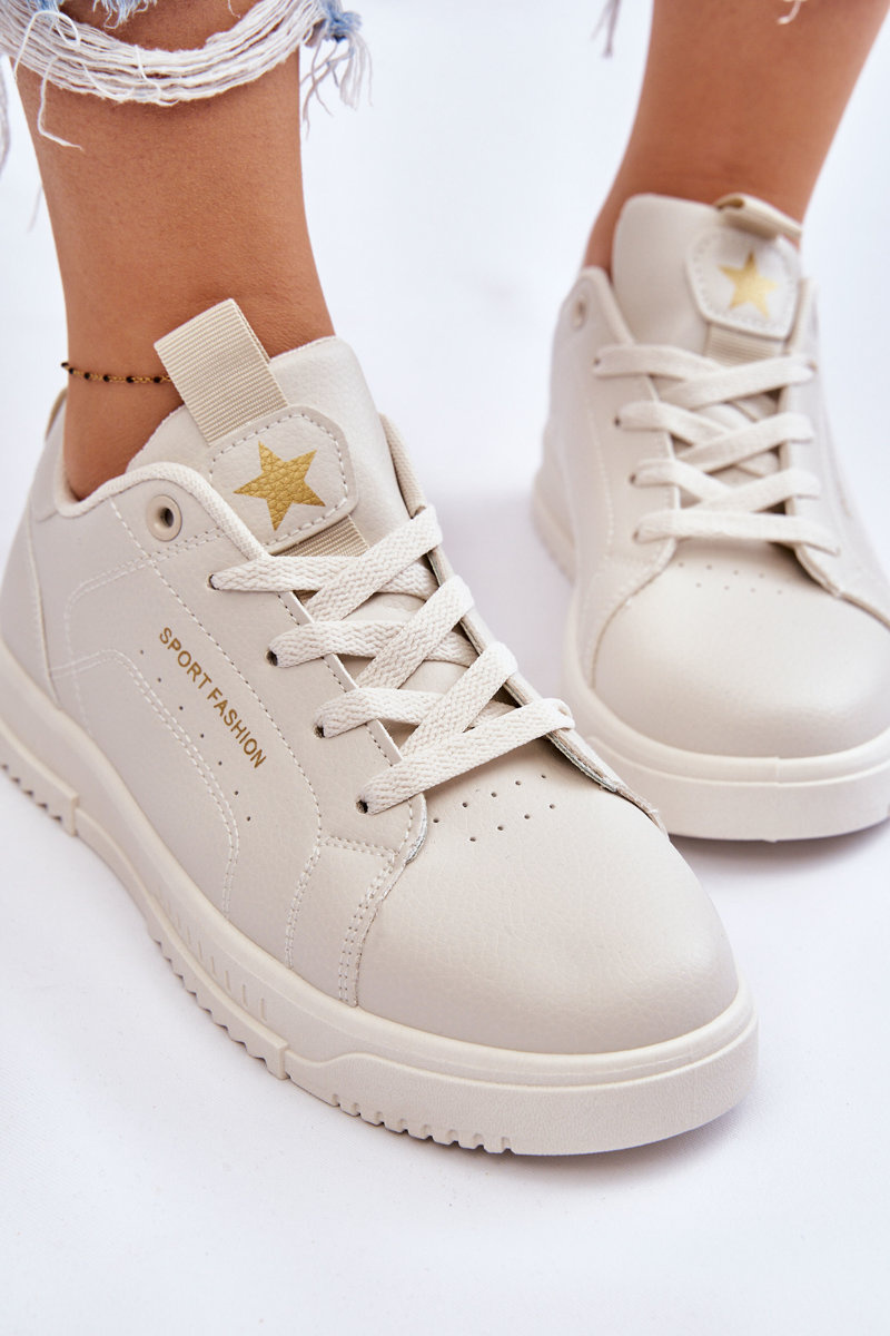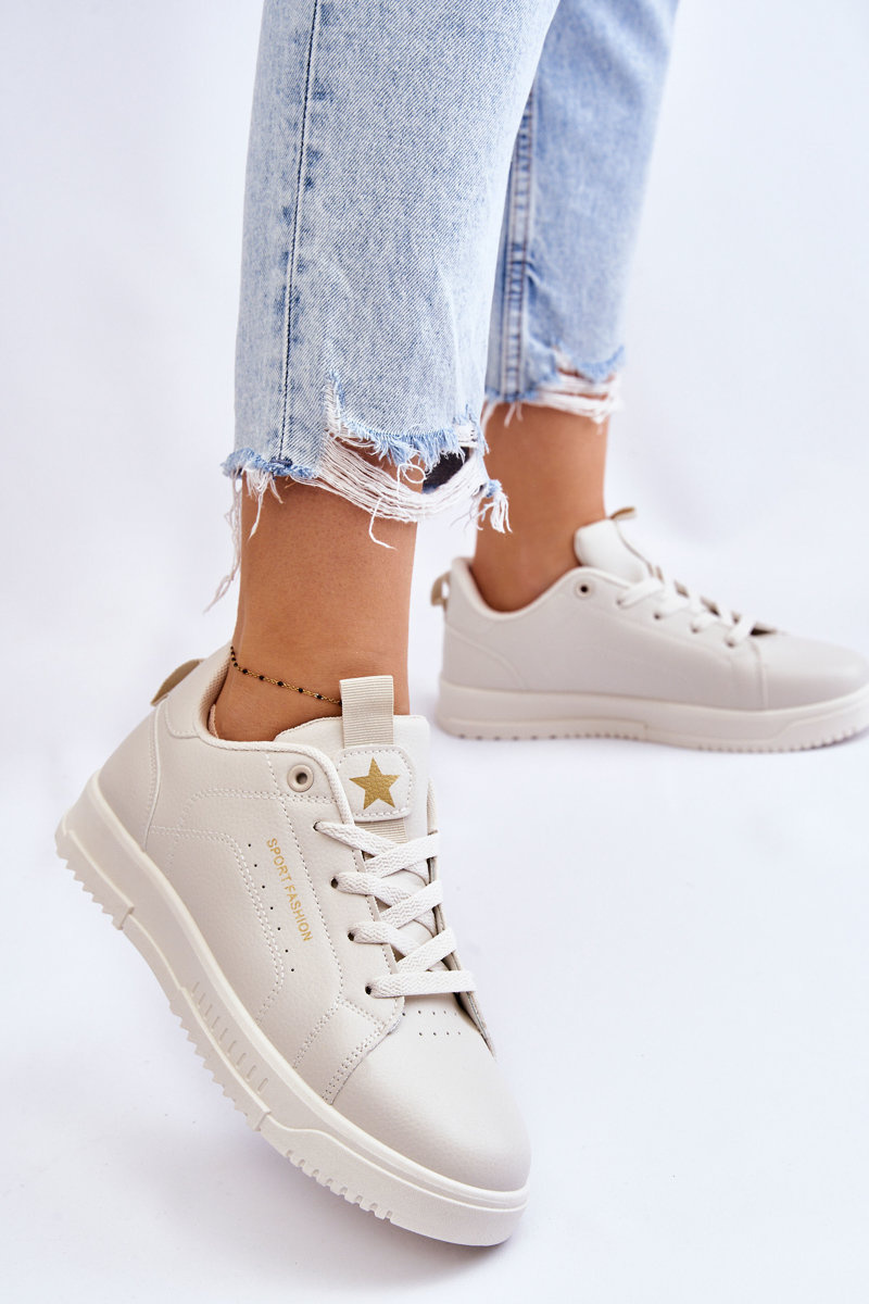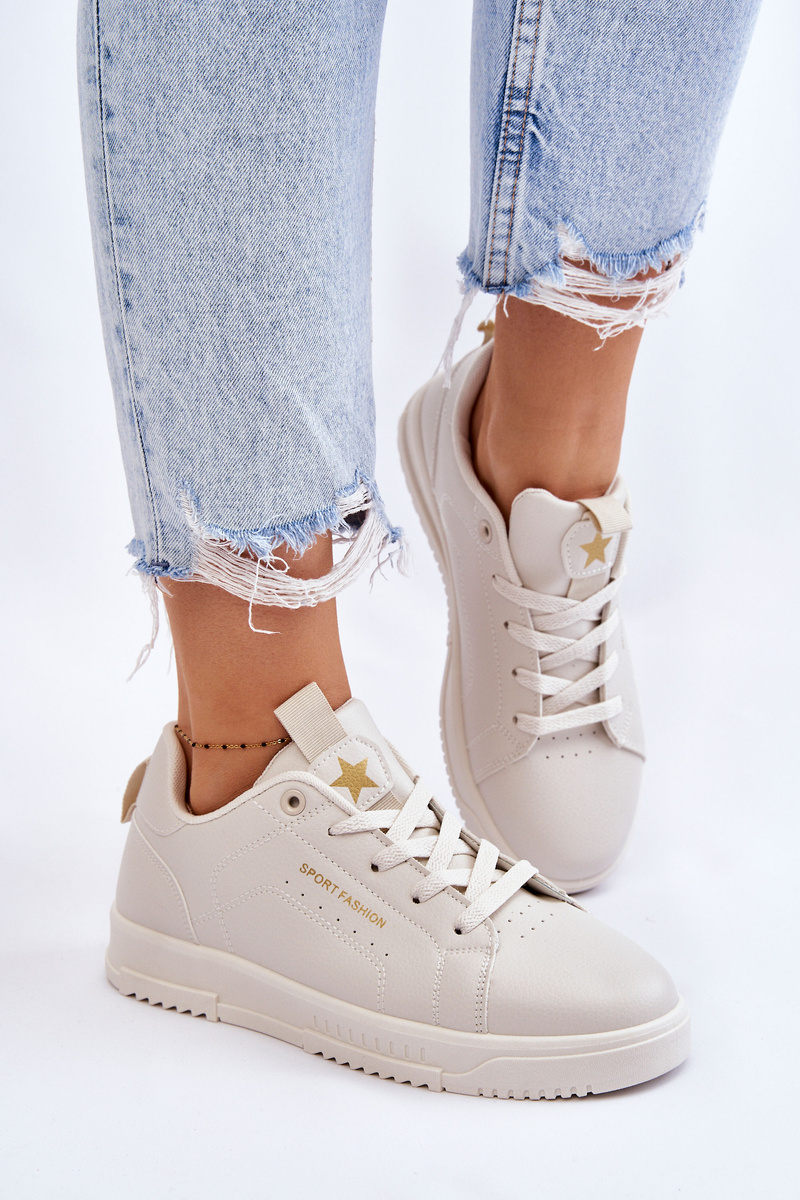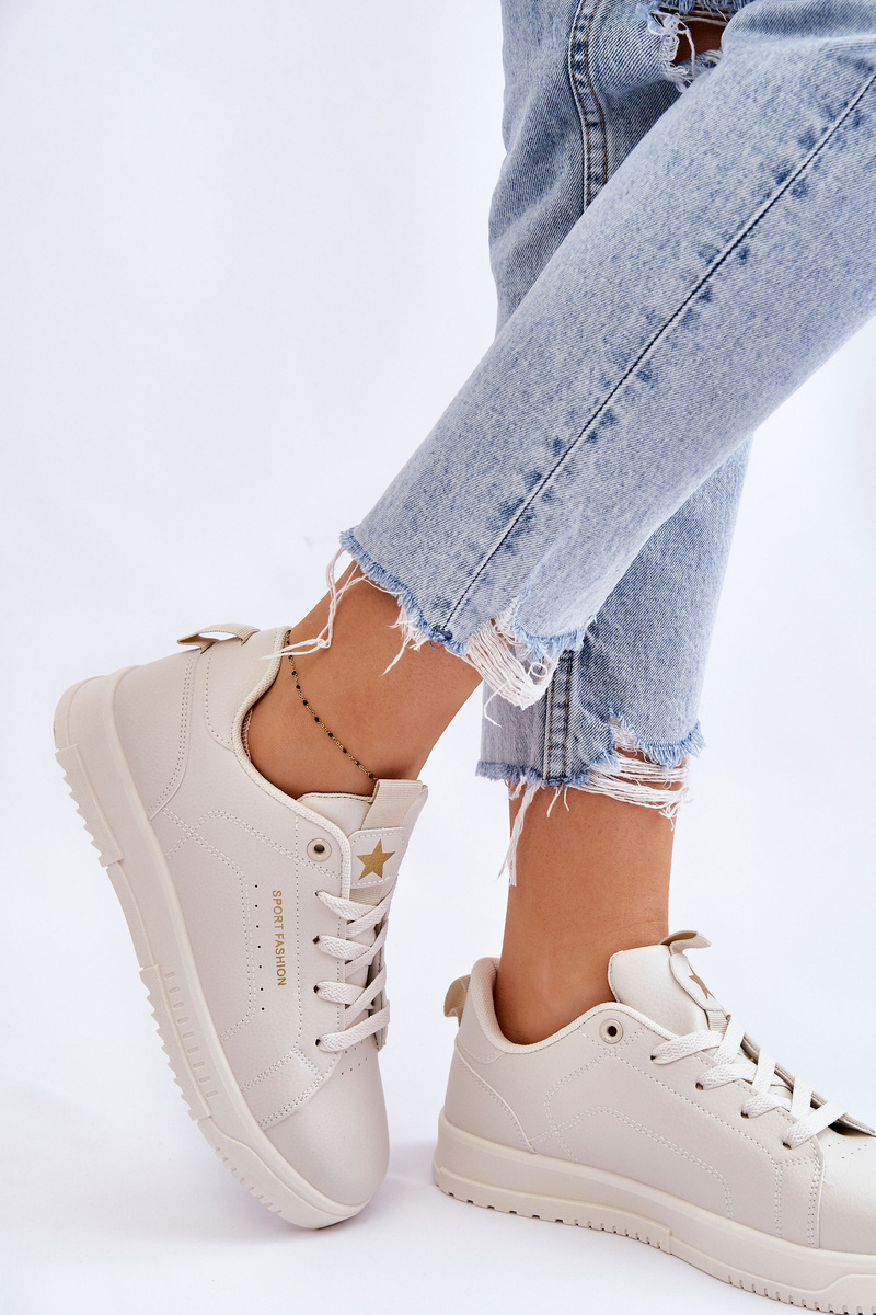 Жіноче спортивне взуття на шнурівці бежевого кольору Mikaela