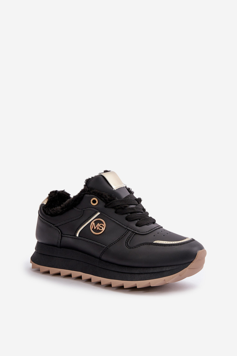 Жіноче спортивне взуття утеплене хутром на платформі Lerisas чорного кольору