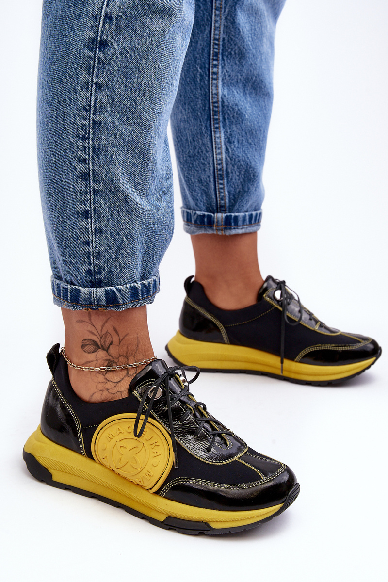 Жіноче шкіряне спортивне взуття Maciejka 06295-01 чорно-жовтий