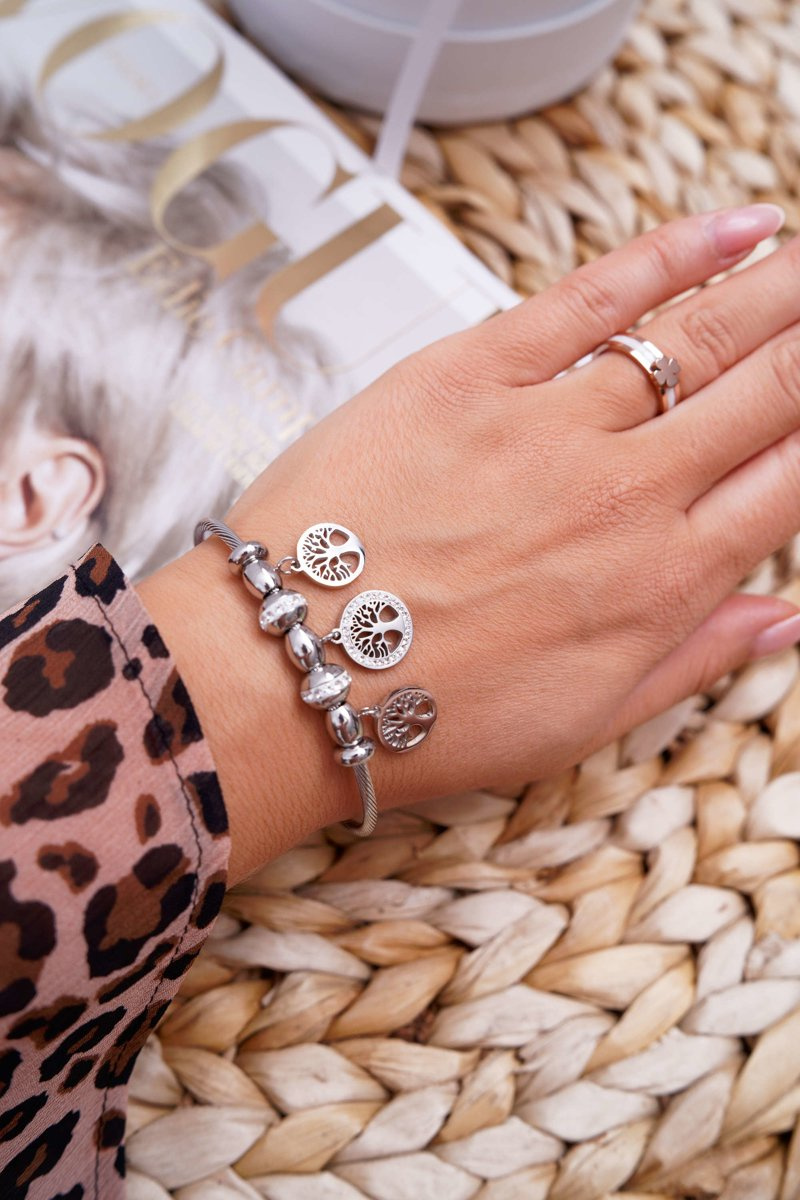Ми, жінки, любимо блискітки. Кожна укладка потребує аксесуарів, і навіть найменші дуже важливі. Ми говоримо про красиві прикраси, які підкреслять найкраще. Чудовий браслет з нержавіючої сталі. Браслет має зручну застібку на сталевому тросі. Крім того, він прикрашений красивими підвісками. Перегляньте всю нашу колекцію ювелірних прикрас і виберіть улюблений аксесуар. Пропозиція стосується лише браслета.