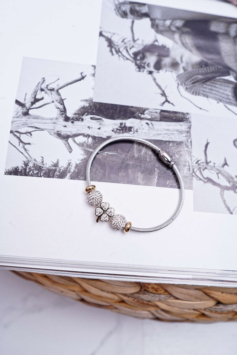Ми, жінки, любимо блискітки. Кожна укладка потребує аксесуарів, і навіть найменші дуже важливі. Ми говоримо про красиві прикраси, які підкреслять найкраще. Чудовий браслет з нержавіючої сталі з красивим дизайном і маленькими блискучими фіанітами. Браслет розстібається, що спрощує його надягання. Перегляньте всю нашу колекцію ювелірних прикрас і виберіть улюблений аксесуар. Пропозиція поширюється на сам браслет.