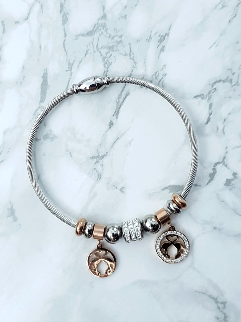 Ми, жінки, любимо блискітки. Кожна укладка потребує аксесуарів, і навіть найменші дуже важливі. Мова йде про красиві прикраси, які підкреслять найкраще. Витончений браслет зі сталевого троса з красивими мерехтливими підвісками різних форм і дизайнів. Браслет має магнітну застібку, що полегшить його одягання. Перегляньте всю нашу колекцію ювелірних прикрас і виберіть улюблений аксесуар.