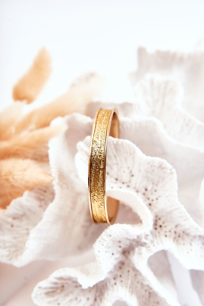 Кожна укладка повинна бути збагачена аксесуарами у вигляді прикрас. Чудовий браслет виготовлений з металу з тисненням. Це модель без застібок, що полегшує надягання. Ця модель ідеально підходить як для елегантних, так і для повсякденних стилізацій. Перегляньте всю нашу колекцію ювелірних виробів і виберіть улюблений аксесуар.