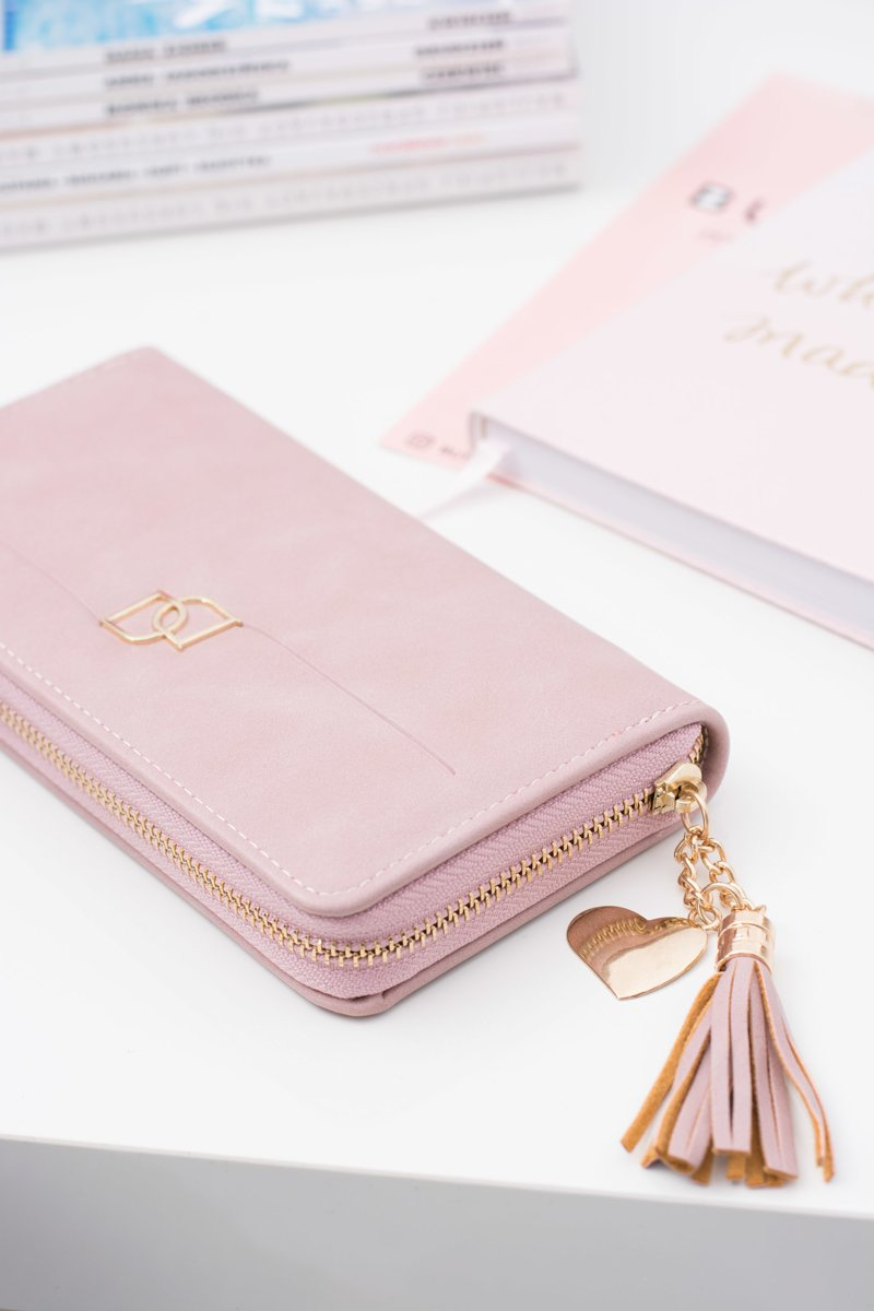 Представляємо гарний гаманець для елегантних дам. Цей виріб характеризується винятковим шиком за взірцем модних тенденцій. Гаманці виготовлені тільки з матеріалів найвищої якості. Ретельна і красива обробка гаманця відображає неймовірну увагу до деталей і модний смак. Всередині ви знайдете 3 відділення, які застібаються на блискавку, прикрашені кільцем для ключів із золотим серцем і китицями. Одна з кишень на блискавці, що чудово підійде для зберігання монет, а також є 8 відділень з боків для карток і два для більших документів. Доступний в декількох кольорах. Не чекайте та придбайте собі цей чудовий гаманець!