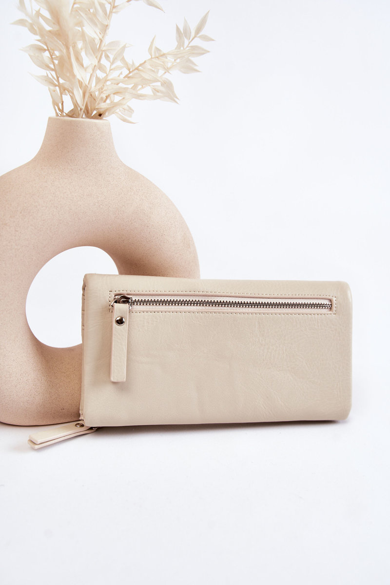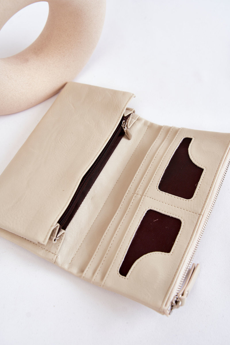 Класичний великий жіночий гаманець виготовлений з еко шкіри. Закривається на магніт. У камері є відкриті кишені і одна закрита на блискавку. Крім того, в гаманці є місце для візиток, ID-картки, а також місце для фото. Кишені на клапані і з тильного боку закриваються на блискавку.