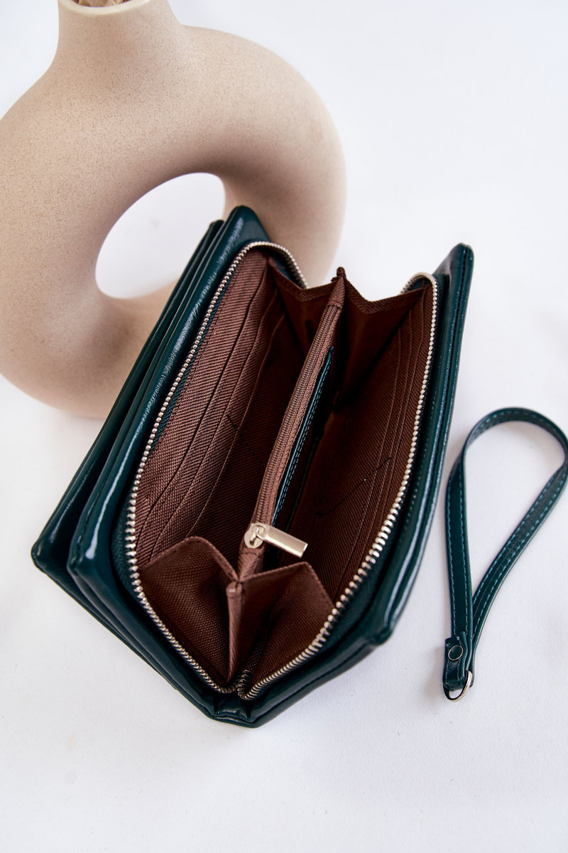 Жіночий великий шкіряний гаманець на блискавці Зелений блиск