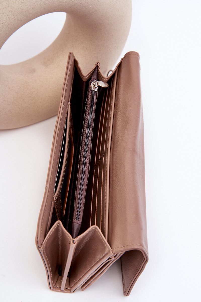 Гаманець жіночий з еко шкіри. Модель у формі прямокутника. Гаманець має кишеню на блискавці та основну кишеню, що закривається на магнітну застібку. Всередині є додаткові відділення та місце для карток. Ви точно повинні це мати!