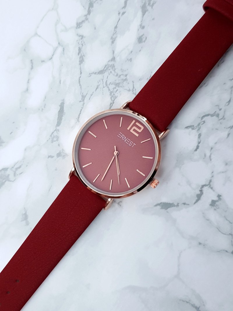 Жіночий годинник Claire від Ernest! Остання модель з красивим шикарним конвертом і регульованим ремінцем. Це ідеальний вибір для елегантних жінок! Підходить як до повсякденного стилю, так і до більш елегантного. Великий добре читається циферблат в колір ремінця. Не чекайте більше, побалуйте себе елегантністю найвищої якості. Кожен годинник упакований в декоративну коробку.