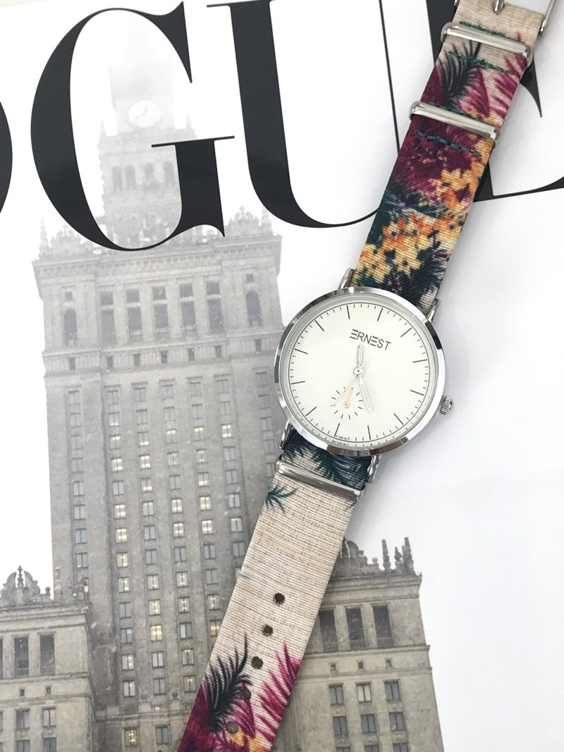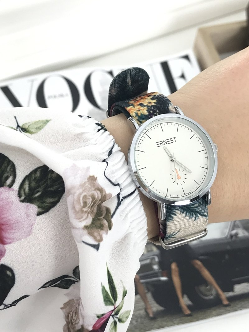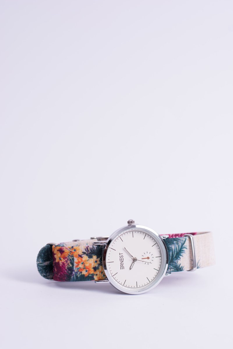 Ernest — це світовий бренд, який цінують жінки в усьому світі. Модель Flores - це гарний годинник, створений для жінок, які люблять вишукані доповнення до свого стилю. Плоский безель у поєднанні з ремінцем з квітковим малюнком надає йому незвичайний вигляд. Конверт виготовлений з хірургічної сталі, лямка легко і швидко регулюється. Якісне виконання механізму та конверта.