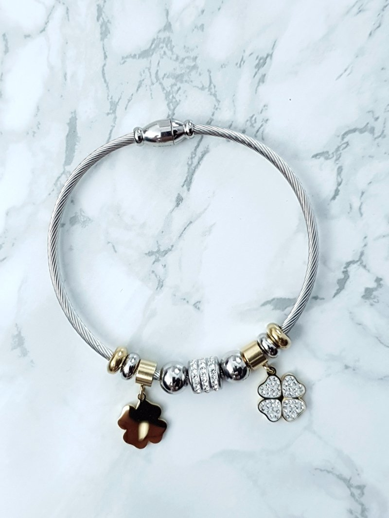 Ми, жінки, любимо блискітки. Кожна укладка потребує аксесуарів, і навіть найменші дуже важливі. Мова йде про красиві прикраси, які підкреслять найкраще. Витончений браслет зі сталевого троса з красивими мерехтливими підвісками різних форм і дизайнів. Браслет має магнітну застібку, що полегшить його одягання. Перегляньте всю нашу колекцію ювелірних прикрас і виберіть улюблений аксесуар.
