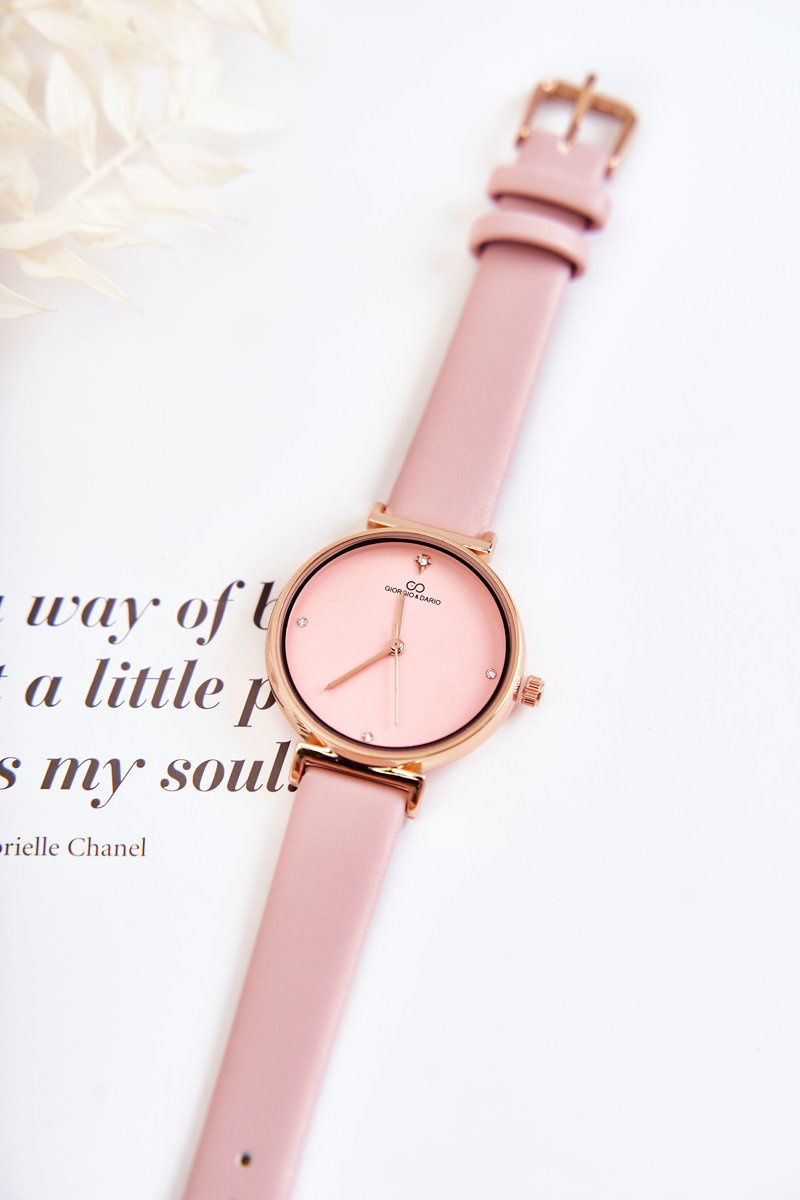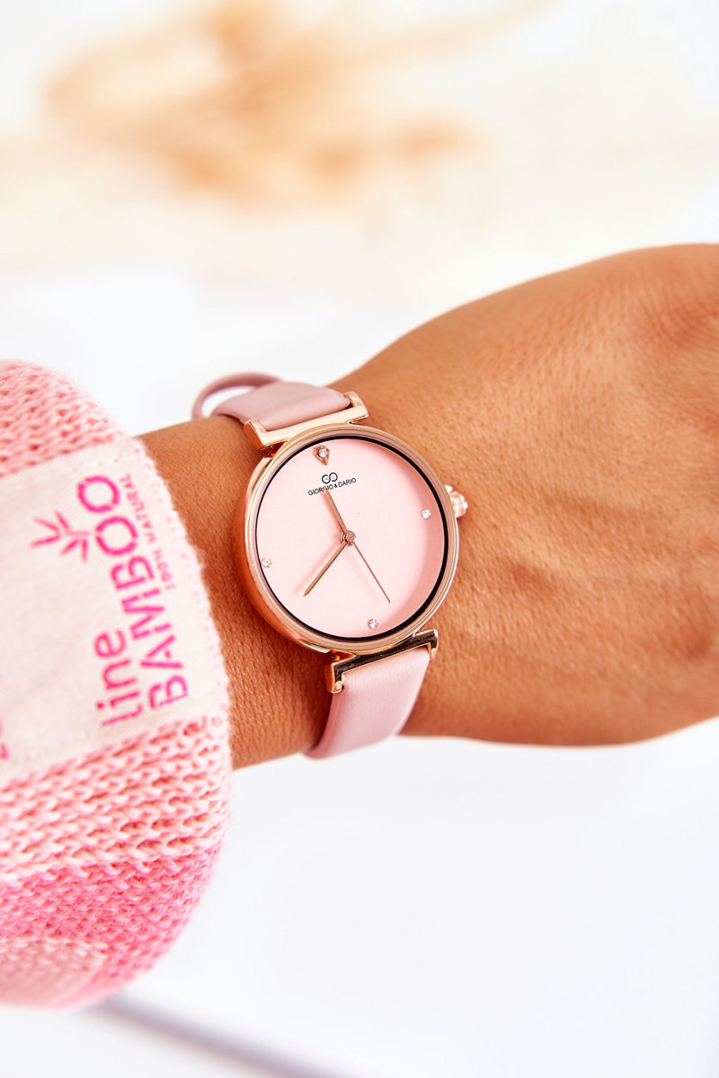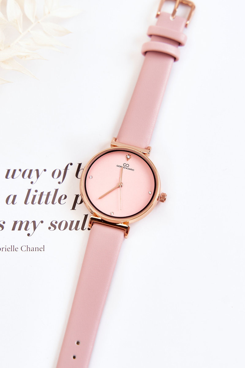 Жіночий класичний годинник на шкіряному ремінці Giorgio & Dario рожевий