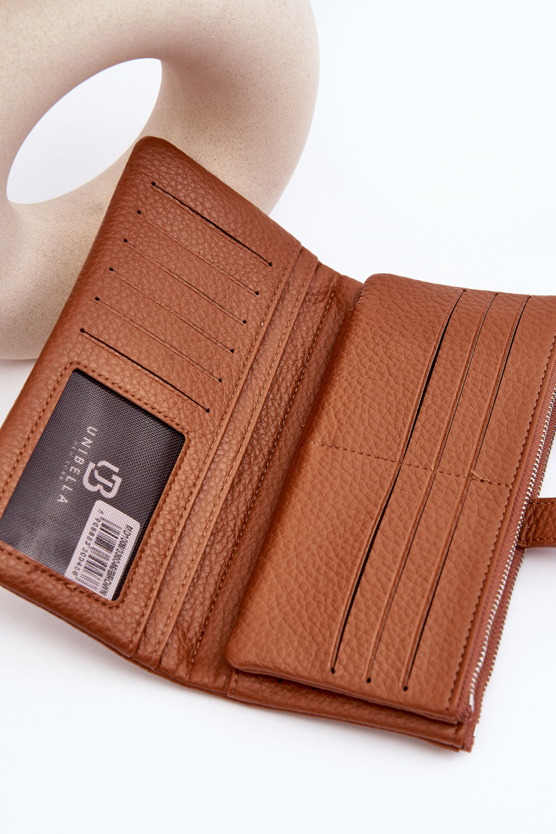 Великий жіночий гаманець з еко шкіри. Застібається на застібку та блискавку. Всередині є відкриті відділення і одне закривається на блискавку. Крім того, гаманець містить багато місць для візиток або кредитних карток. У цей гаманець точно помістяться найнеобхідніші речі!