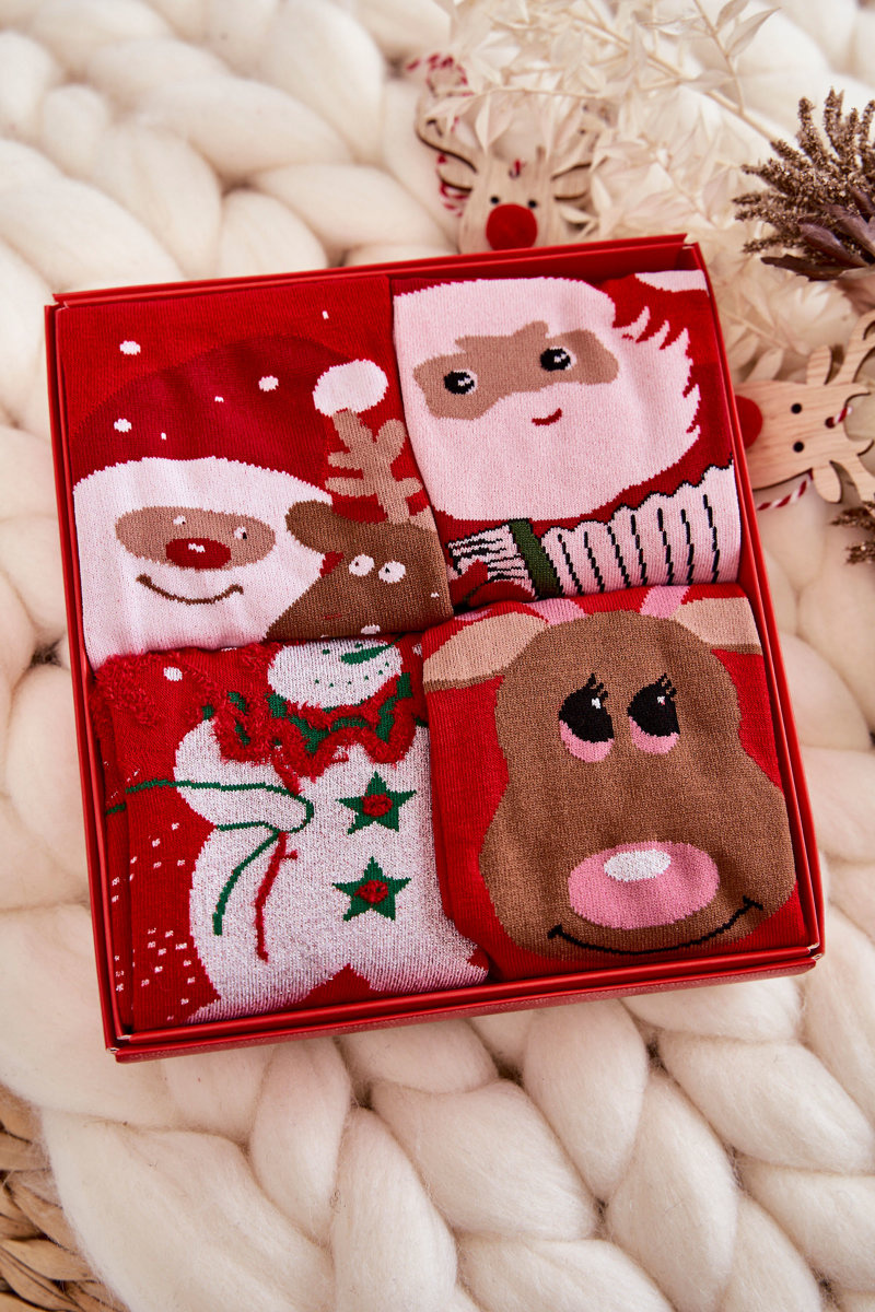 Чудовий набір із чотирьох пар жіночих шкарпеток із різдвяними візерунками. Упаковано в красиву коробку з новорічною картинкою, перев'язану декоративною стрічкою. Ідеальний різдвяний подарунок для кожного! Виготовлений з високоякісної бавовни. Вони мають тонкий рант, який правильно підлаштовується під ширину ноги.