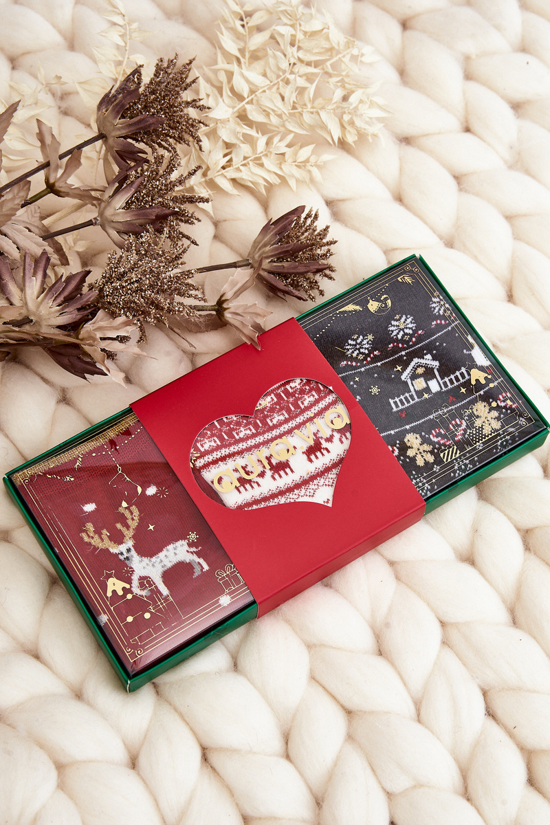 Чудовий набір із трьох пар жіночих шкарпеток у святкових візерунках. Ідеальний святковий подарунок для кожного! Виготовлений з високоякісної бавовни. Вони мають витончену манжету, яка правильно підлаштовується під товщину ноги.