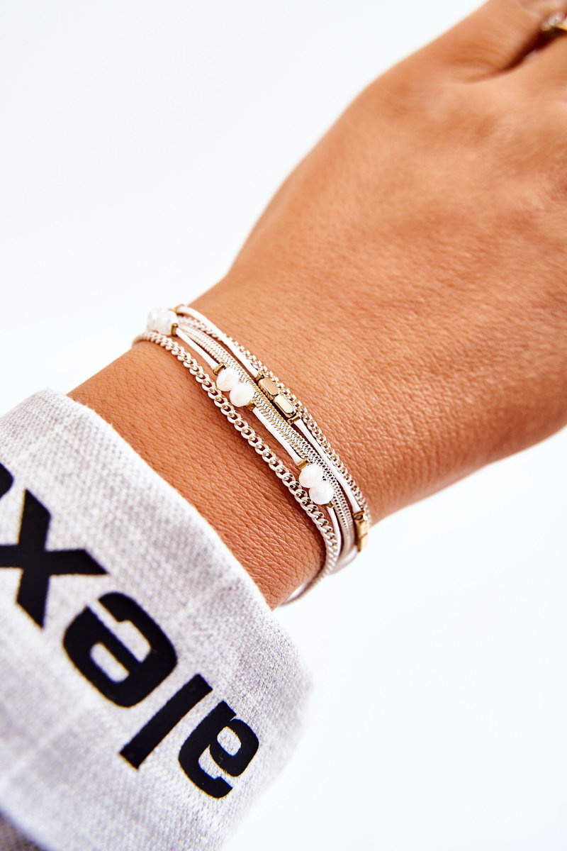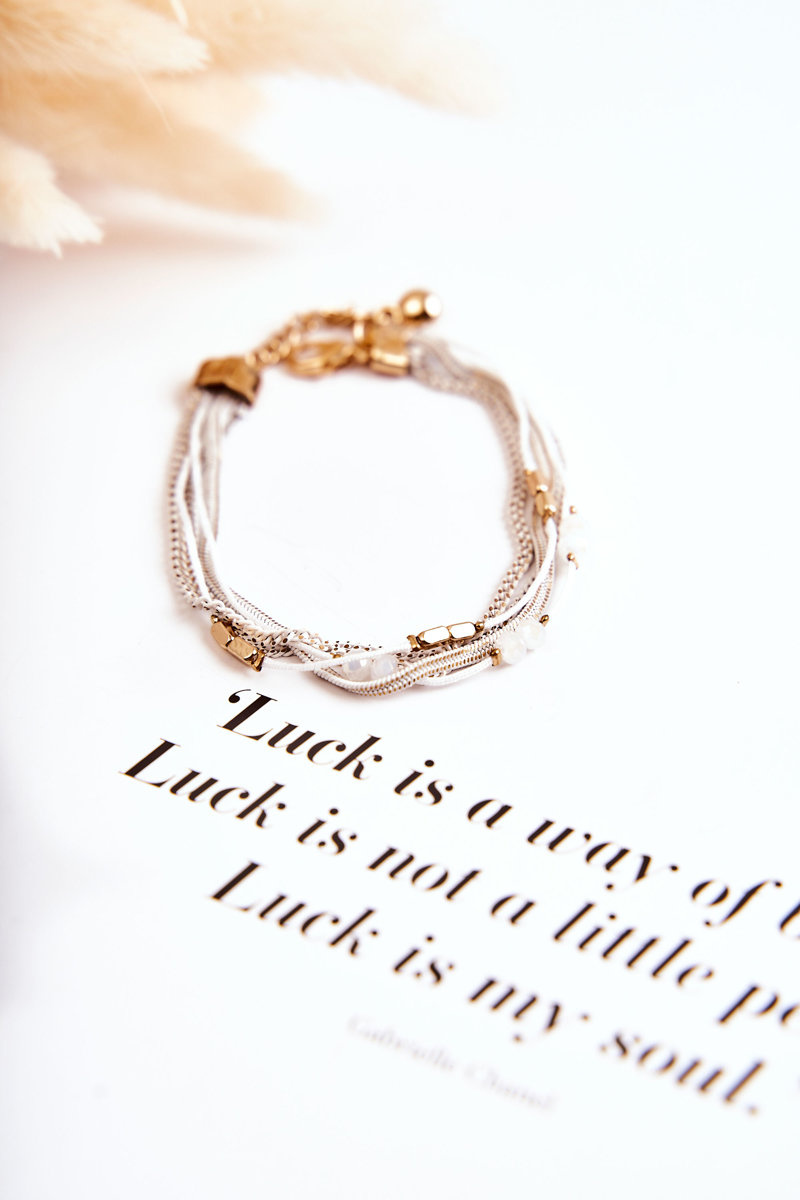 Гарний браслет, що складається з декількох ланцюжків. Його виготовляли з недорогоцінного металу. Має можливість регулювати довжину і має прикраси у вигляді імітації кристалів. Браслет виглядає дуже особливо. Обов’язково ознайомтеся з рештою нашої пропозиції доступних моделей прикрас. Додайте стилю своїй укладці!