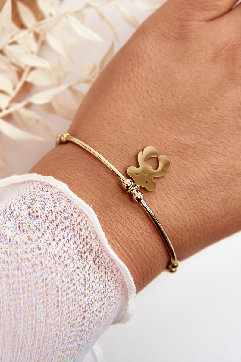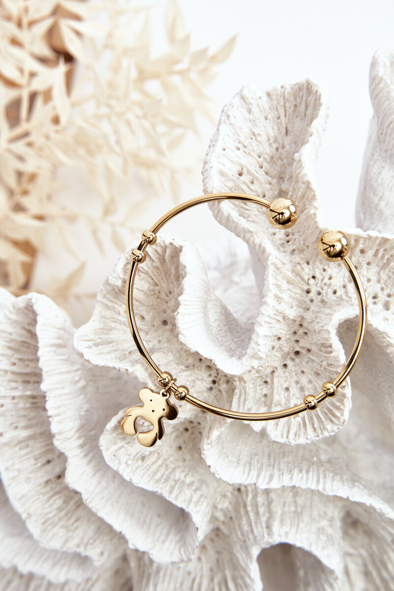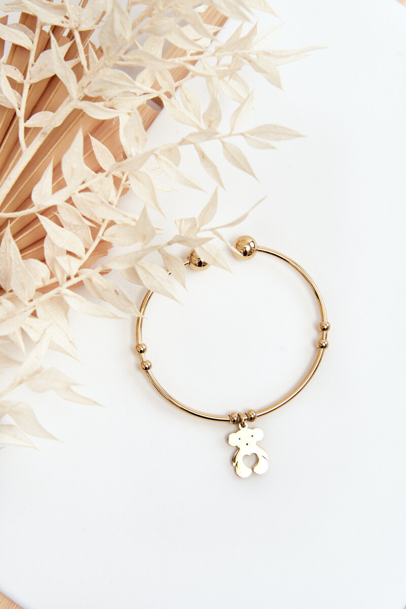 Жіночий сталевий браслет із золотим ведмедиком