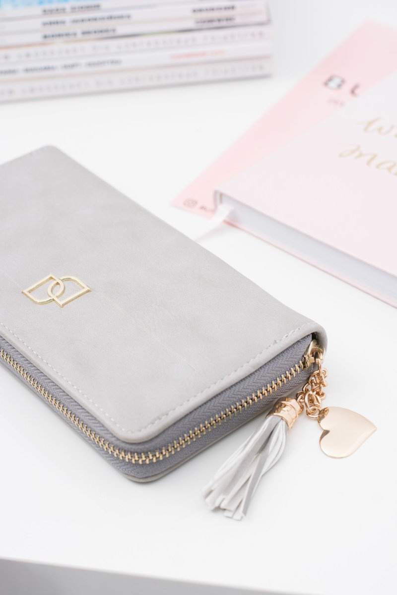 Представляємо гарний гаманець для елегантних дам. Цей виріб характеризується винятковим шиком за взірцем модних тенденцій. Гаманці виготовлені тільки з матеріалів найвищої якості. Ретельна і красива обробка гаманця відображає неймовірну увагу до деталей і модний смак. Всередині ви знайдете 3 відділення, які застібаються на блискавку, прикрашені кільцем для ключів із золотим серцем і китицями. Одна з кишень на блискавці, що чудово підійде для зберігання монет, а також є 8 відділень з боків для карток і два для більших документів. Доступний в декількох кольорах. Не чекайте та придбайте собі цей чудовий гаманець!