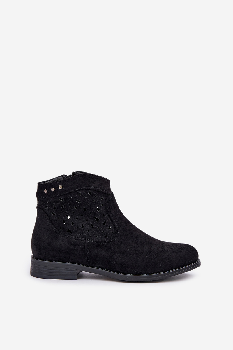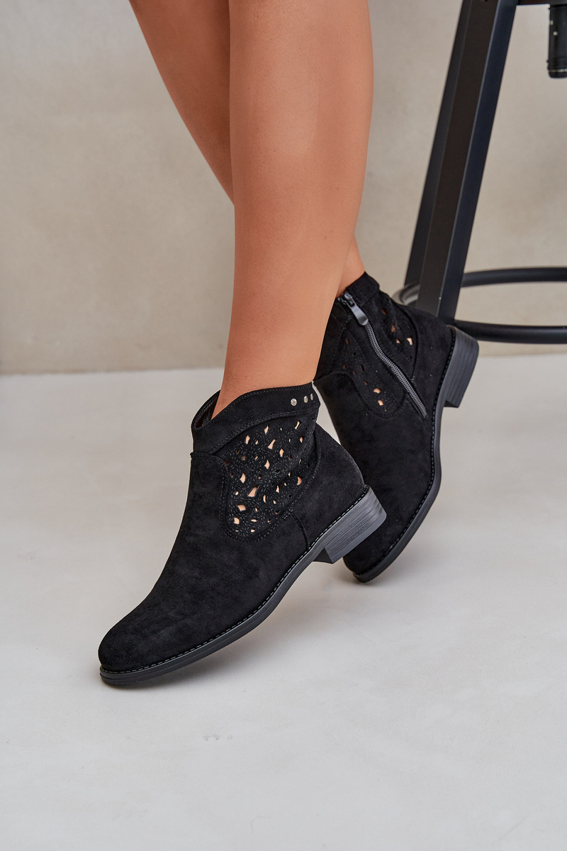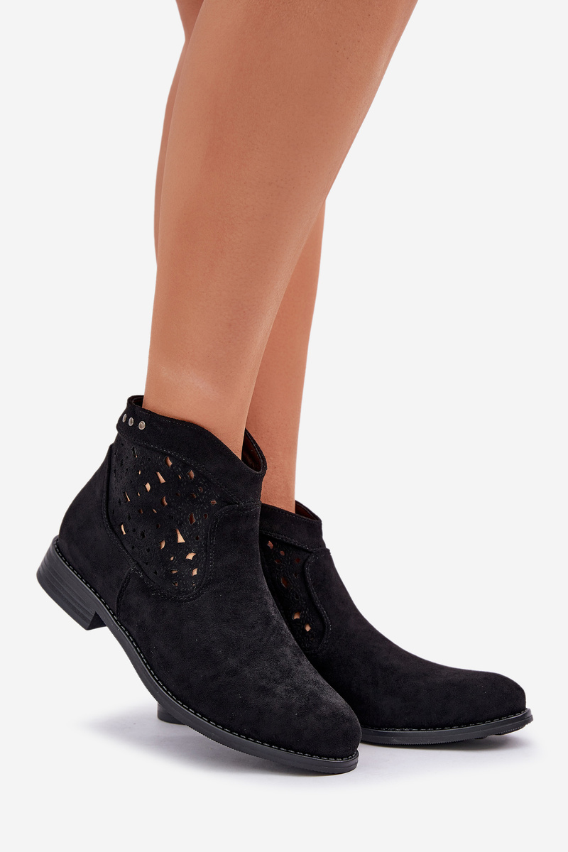 Жіночі Ажурні Чоботи На Плоскому Підборі S.Barski HY51-113 Чорні