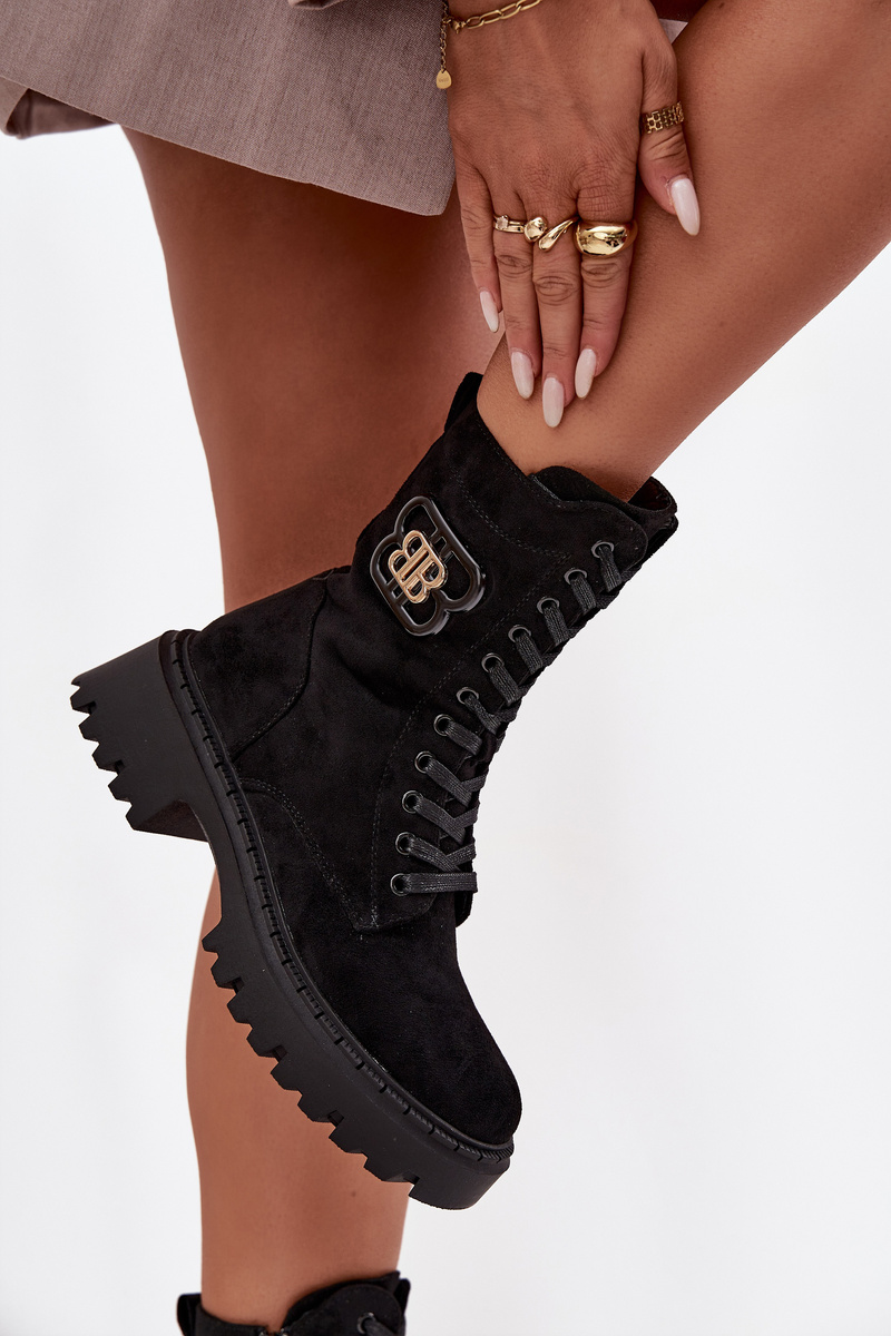 Жіночі Воркери Черевики З Оздобою Теплі Чорні Калінда