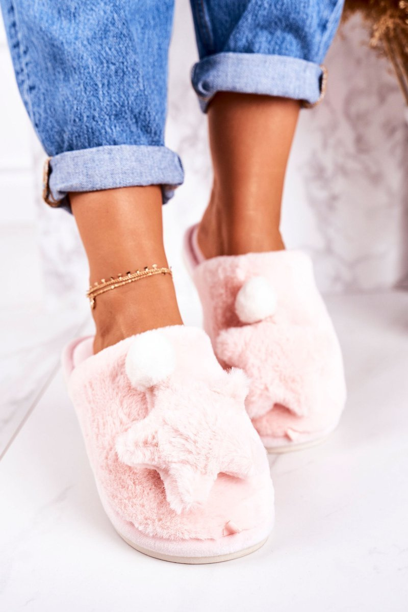 Жіночі Домашні Тапочки З Хутром І Зіркою Світло-Рожеві Ніч-Ніч