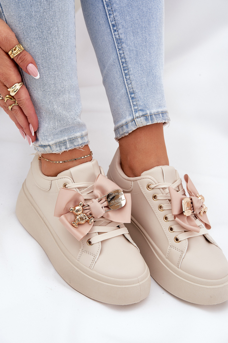 Жіночі Кросівки З Бантом І Брошкою З Ведмедем Бежеві Leathria