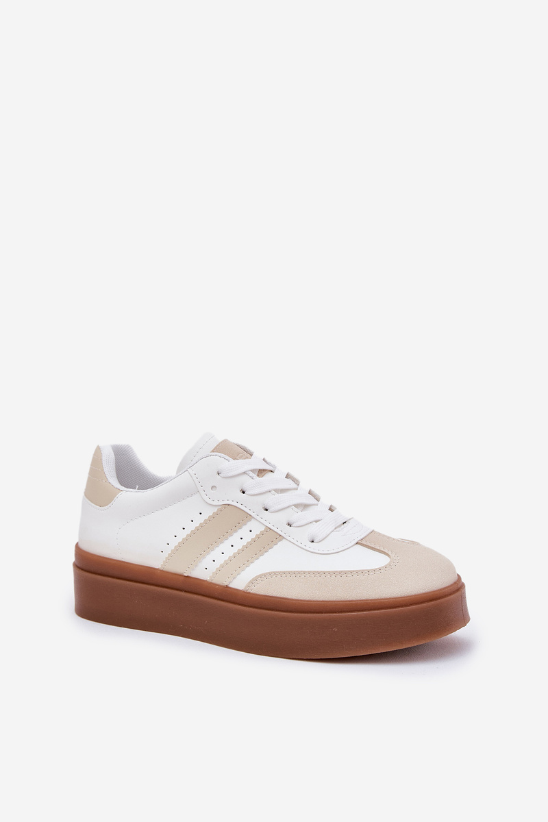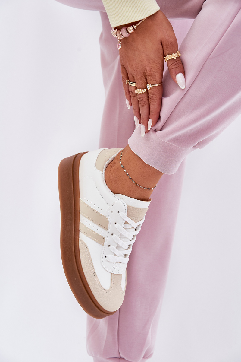 Жіночі Кросівки На Платформі З Еко Шкіри Бежево-Білі Ediriella