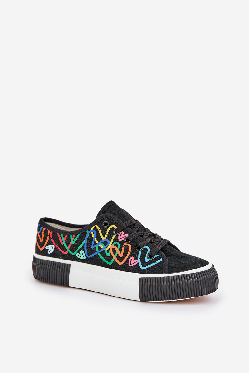 Жіночі кеди з тканини - це ідеальна пропозиція для прихильниць комфорту та стилю. Модель, встановлена на товстішій підошві, забезпечує комфорт носіння і чудово вписується в найновіші тенденції. Округлі носики надають їм класичного вигляду, а принт серця на верхній частині додає шарму і оригінальності. Ідеальні як для повсякденних, так і для більш casual стилізацій! Будь ласка, зверніться до розмірної сітки при виборі розміру.