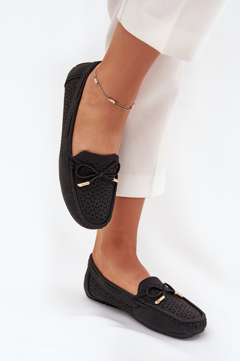 Жіночі Мокасини З Перфорацією І Зав'язкою Чорні Mirisa