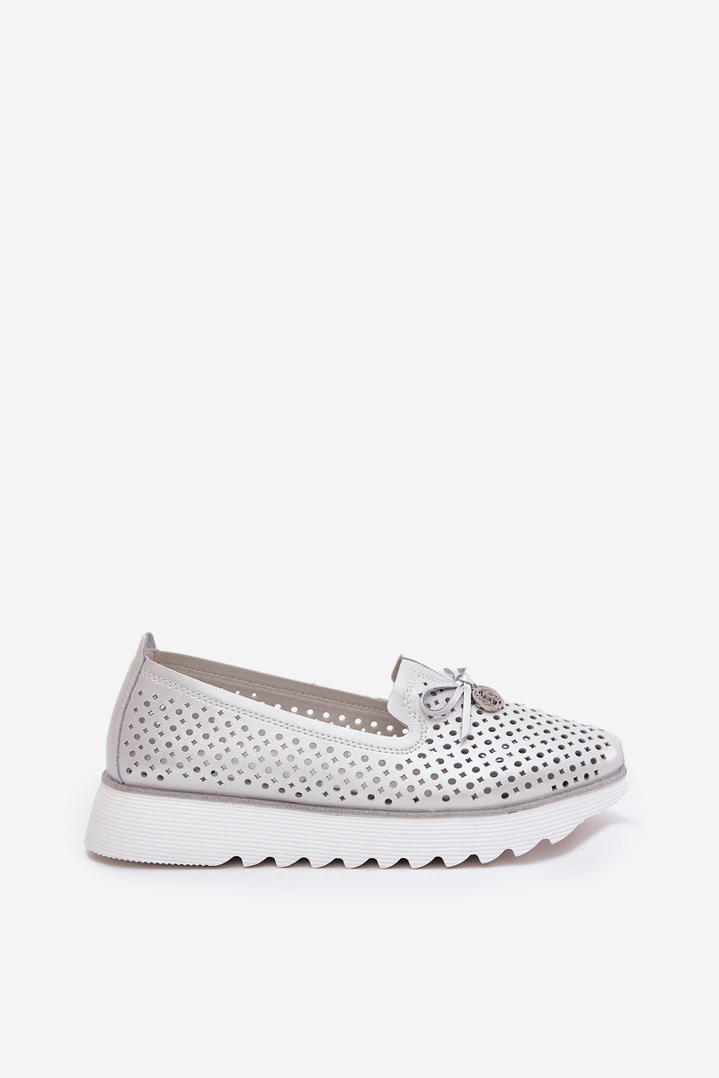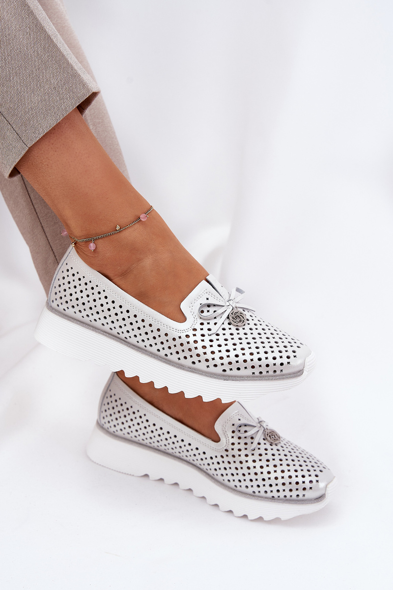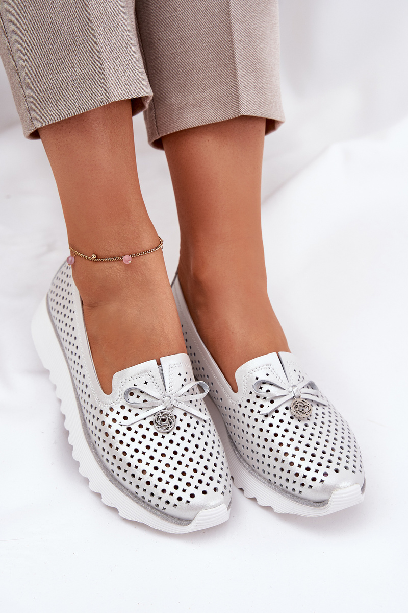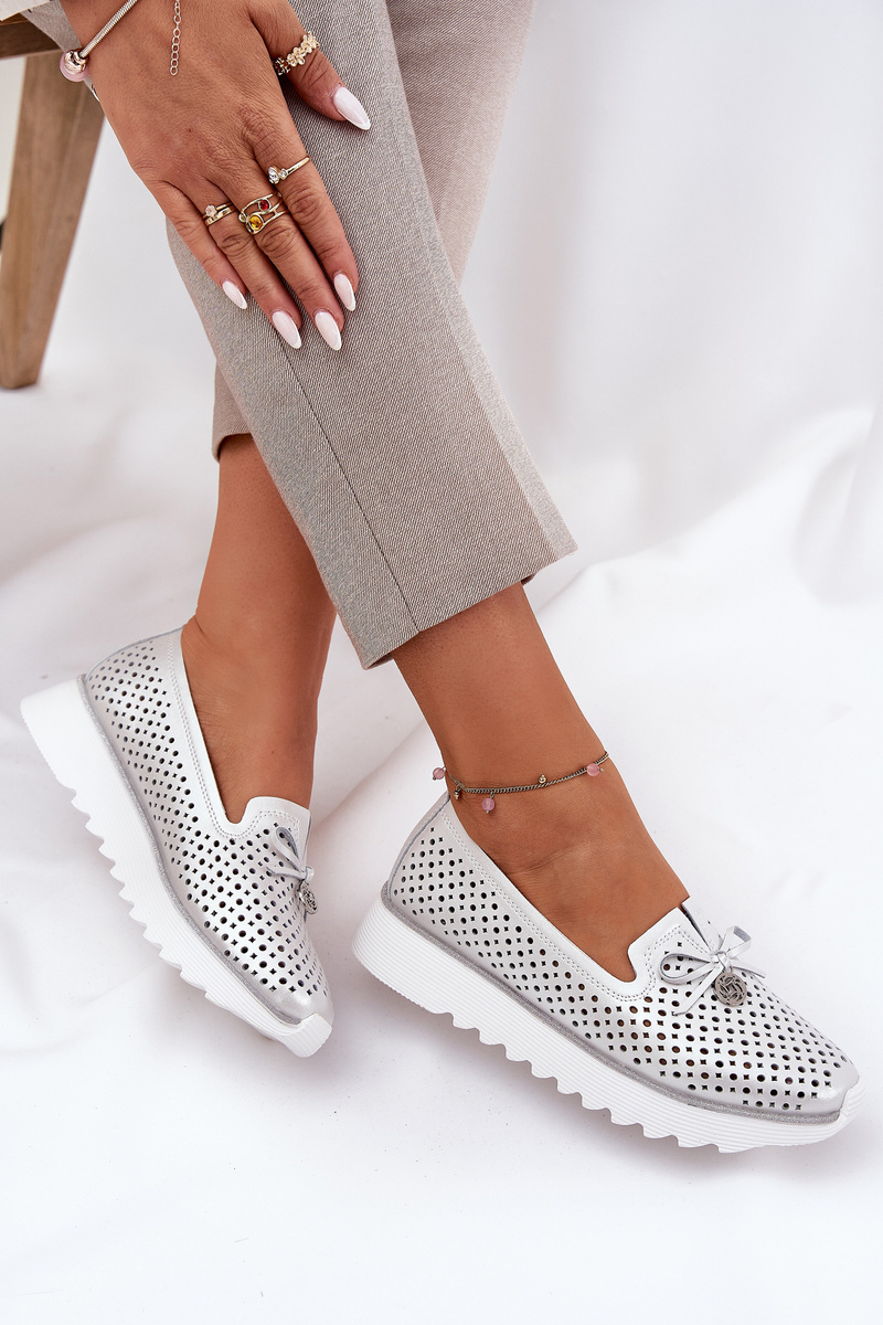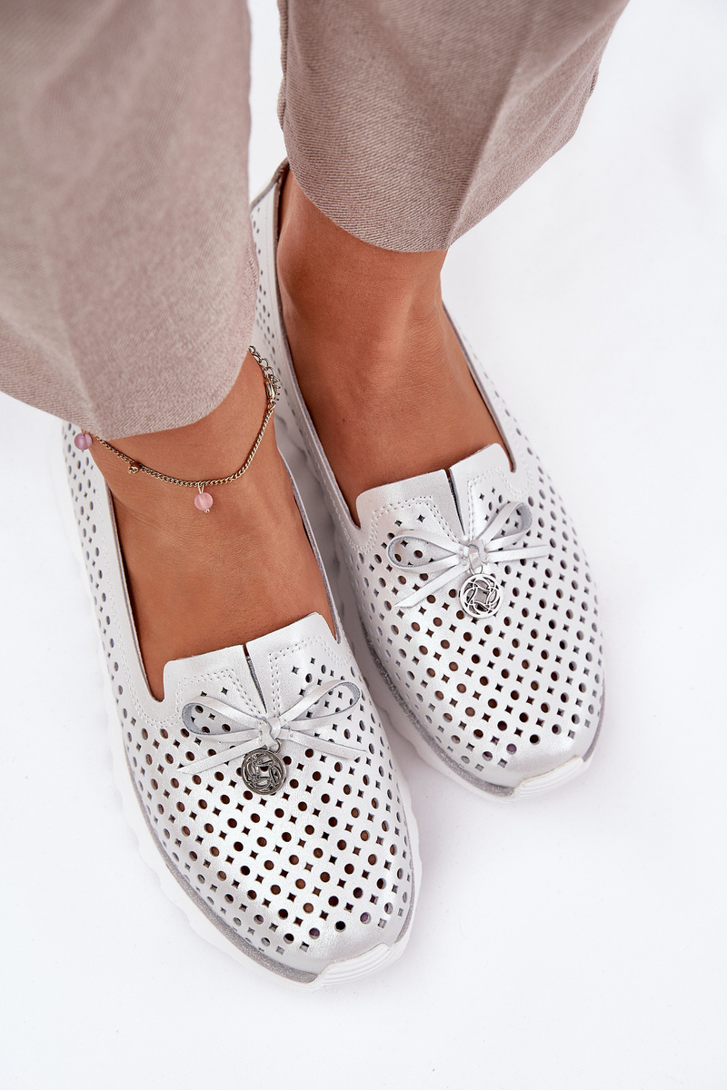 Жіночі Напівчеревики З Ажурного Шкіри З Природної Шкіри D&A LR51-631 Сріблясті