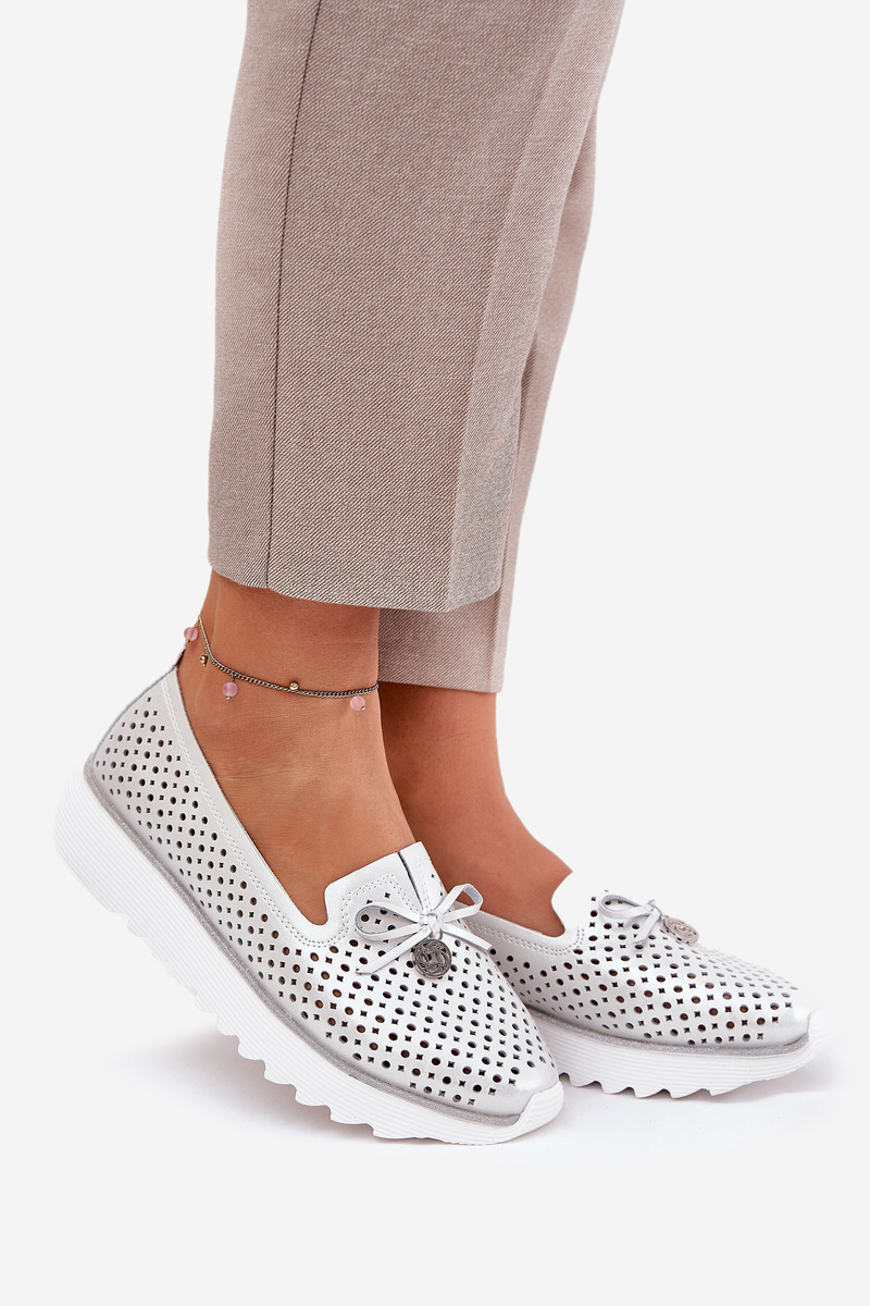 Елегантні, перфоровані жіночі черевики, виготовлені з натуральної шкіри, встановлені на платформі, які поєднують комфорт з ніжним стилем. Закруглені носки забезпечують зручність, а спереду черевиків є бантик і тонкий деталь, що надає їм шарму. Шкіряна, м'яка устілка гарантує комфорт протягом усього дня. Ці черевики стануть ідеальним вибором для повсякденного носіння, поєднуючи елегантність з функціональністю та підходячи до багатьох стилізацій. Будь ласка, зверніться до розмірної сітки при виборі розміру.