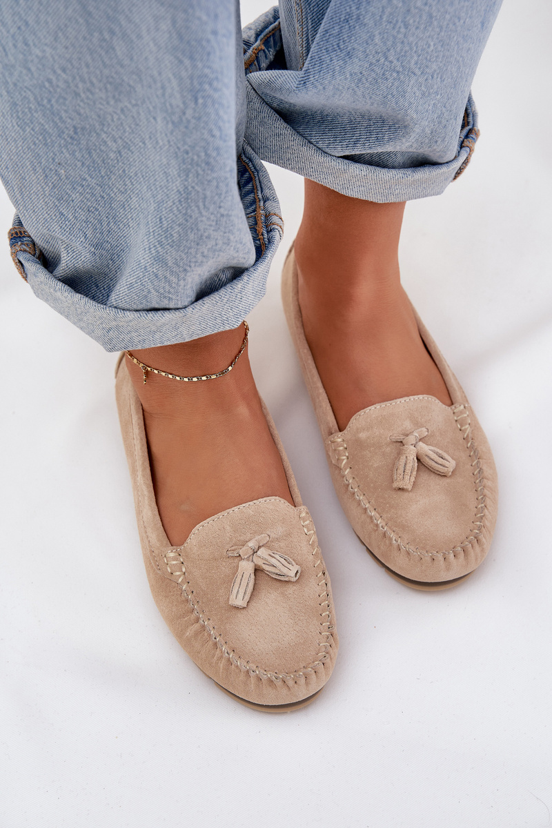 Жіночі Плоскі Класичні Замшеві Мокасини S.Barski LR51-548 Бежеві