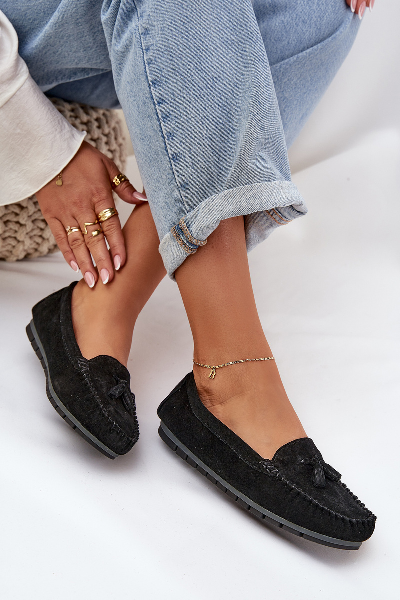 Жіночі Плоскі Класичні Замшеві Мокасини S.Barski LR51-548 Чорні