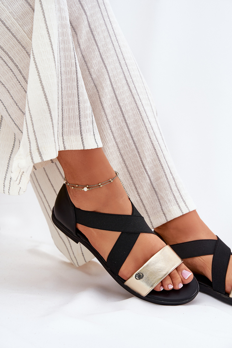 Жіночі Плоскі Сандалі З Еластичними Ремінцями Чорно-Золоті Marinea