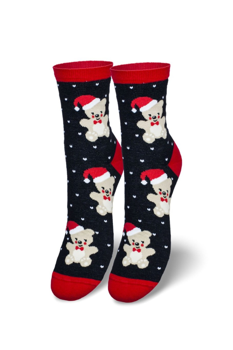 Жіночі Різдвяні Шкарпетки Ведмідь У Шапці Святого Миколая Чорні