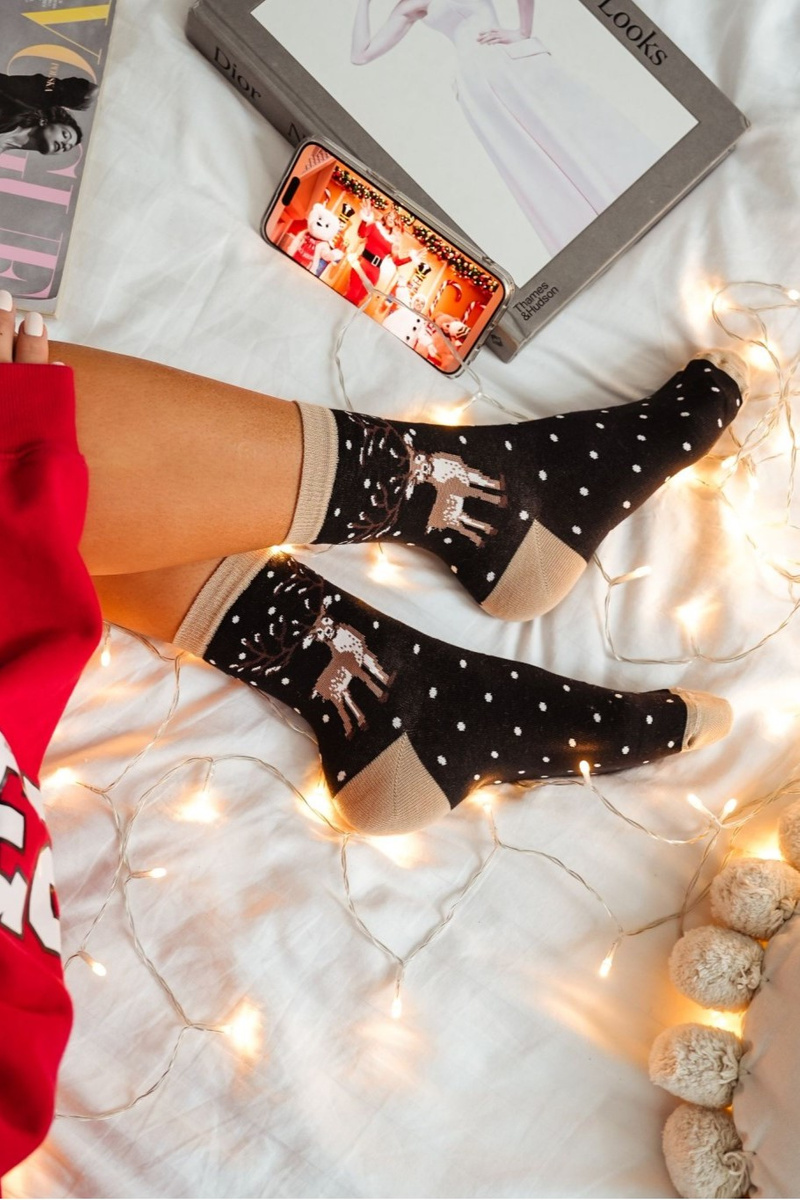 Жіночі Різдвяні Шкарпетки Олень і Крапки Чорні