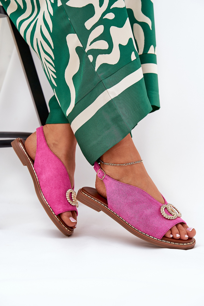 Екологічні замшеві жіночі сандалі - елегантний вибір для теплих днів. Встановлені на плоскому каблуці, вони забезпечують комфорт і стабільність. Закриваються на регульованому ремінці з пряжкою, що дозволяє ідеально підігнати до ноги. Спереду є прикраса, яка додає тонкої елегантності, роблячи їх чудовим доповненням як до повсякденних, так і до більш формальних стилів. Будь ласка, зверніться до розмірної сітки при виборі розміру.