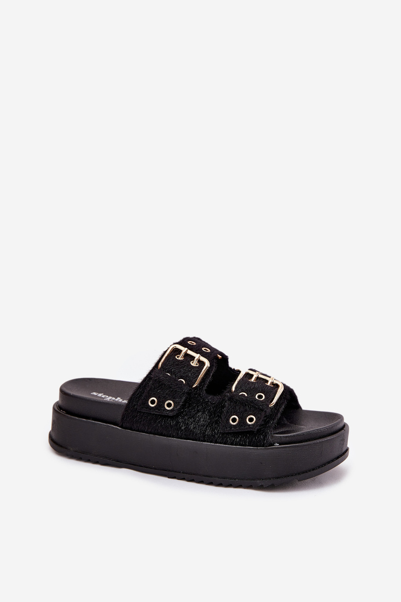 Жіночі Сандалі З Золотими Пряжками На Платформі Чорні Virvania