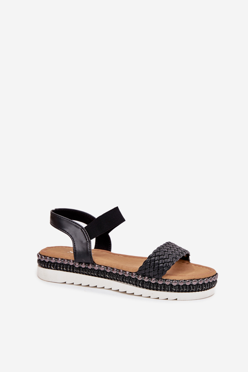 Жіночі Сандалі З Плетінням На Декорованій Платформі Чорні Velara