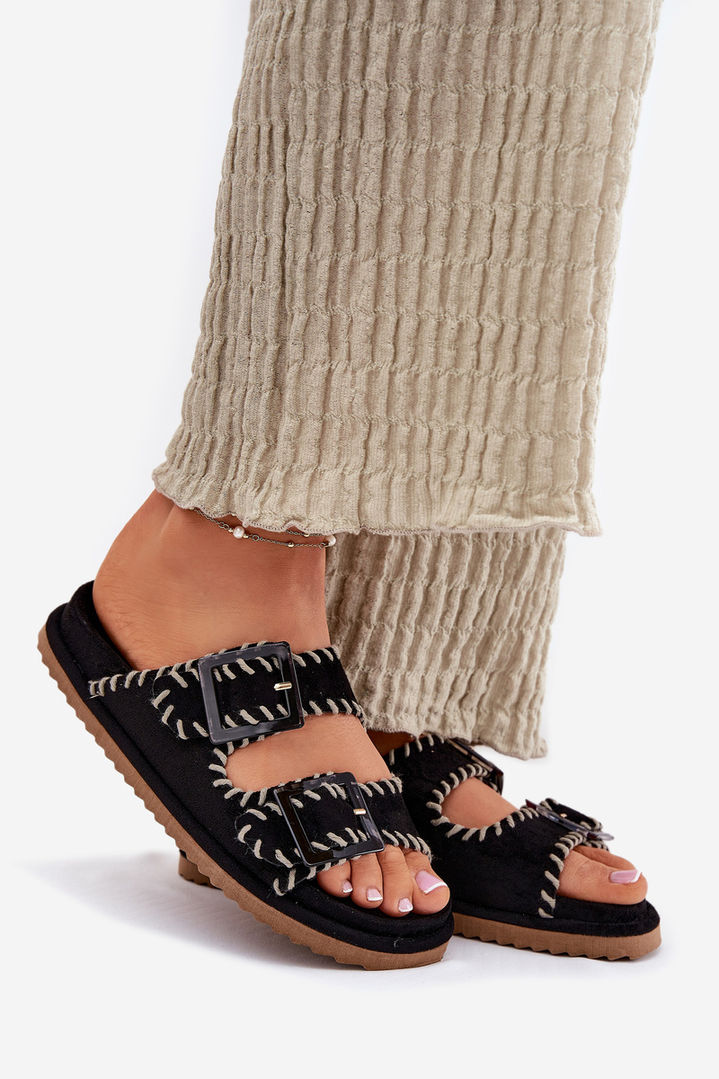 Жіночі Сандалі З Пряжками І Декоративним Швом Чорні Visley