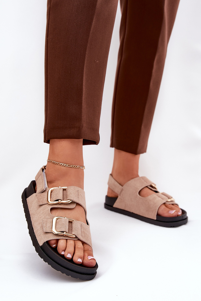 Сандалі, виготовлені з еко-замші, поєднують комфорт з сучасним стилем. Завдяки платформі вони забезпечують комфорт і легкість під час ходьби. Закриття на липучку дозволяє ідеально підігнати до ноги. Ця модель відрізняється золотими пряжками, які надають їй унікального шарму. Це ідеальний вибір для літніх днів! Будь ласка, зверніться до розмірної сітки при виборі розміру.