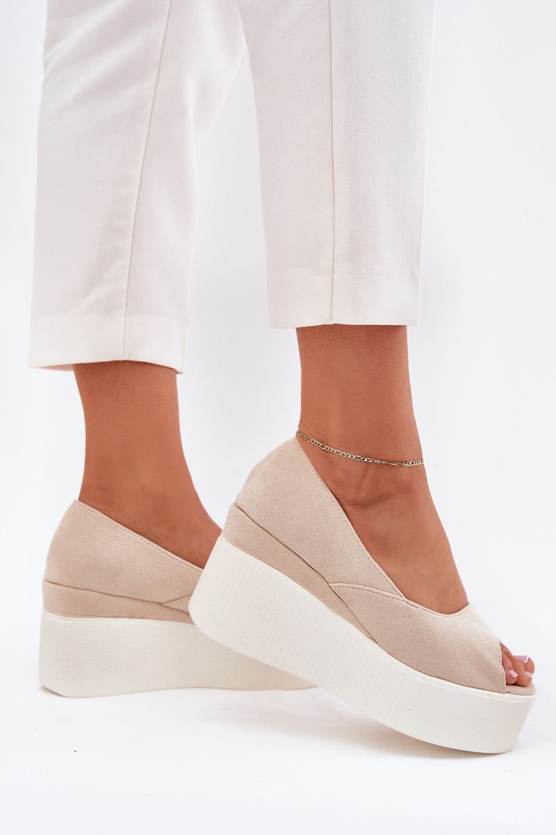 Жіночі Сандалі На Каблуку І Платформі Світло-бежеві Феліра
