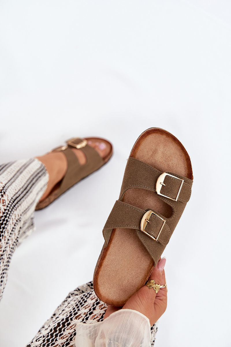 Жіночі Сандалі На Корковій Платформі З Золотими Пряжками Зелені Lisavionea