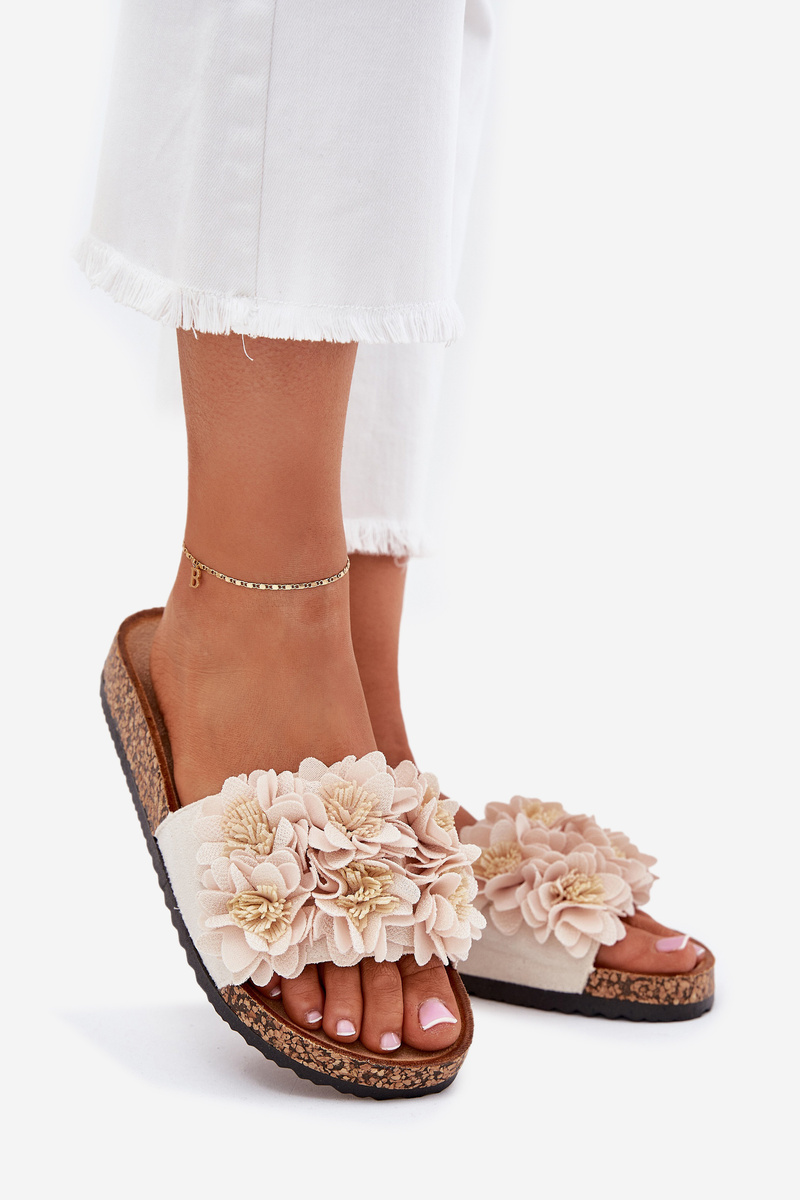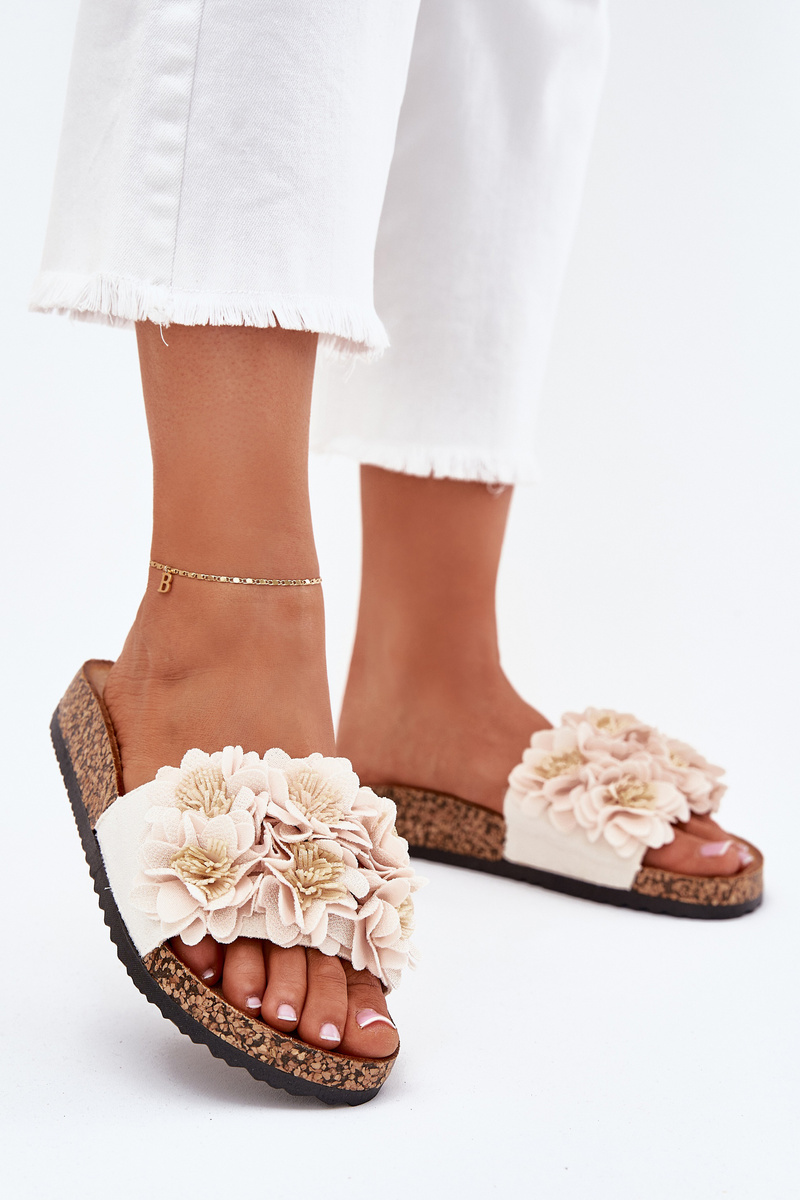 Жіночі Сандалі На Корковій Підошві З Квітами Бежеві Ferenza